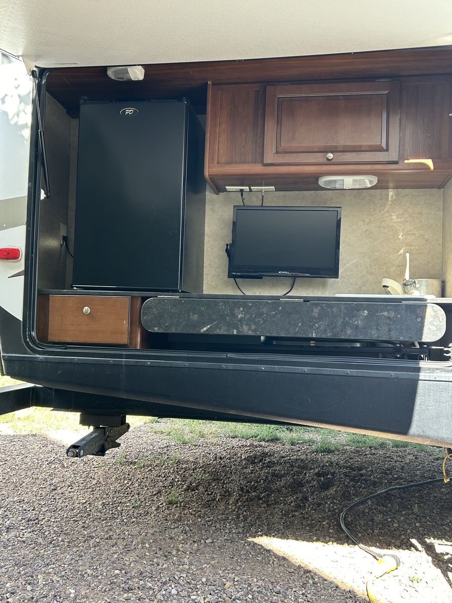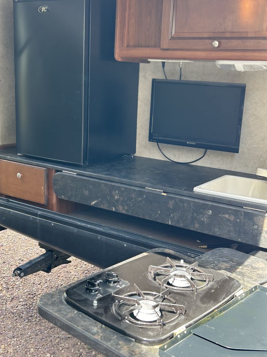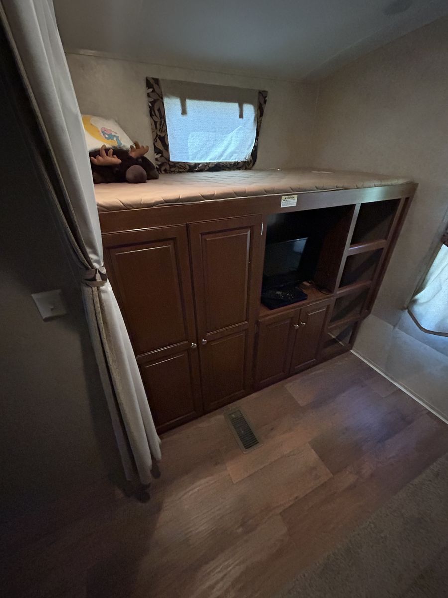 VenmoThis has been a great camper. Room for lots of kids with their own bunk house in the back. Comes with a full size queen mattress. Great outdoor entertaining kitchen area. There is some sun damage you can see in the photos. Just cosmetic, you can purchase kits to make it look like new. Text with any questions.