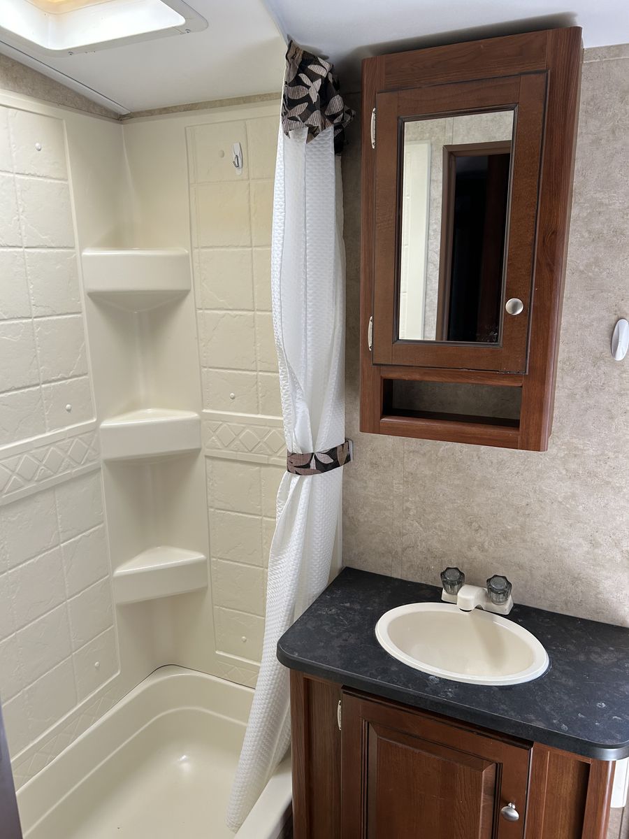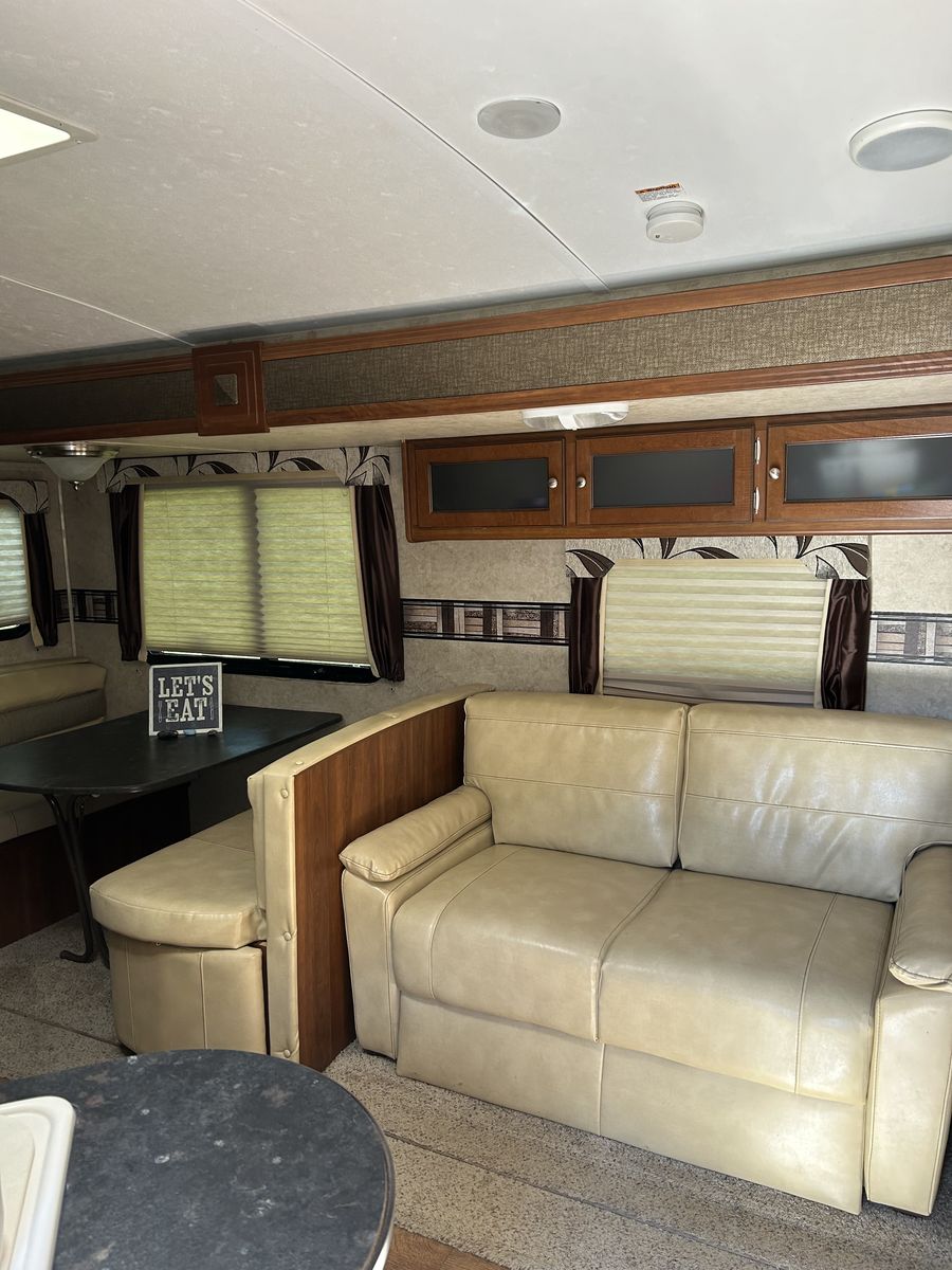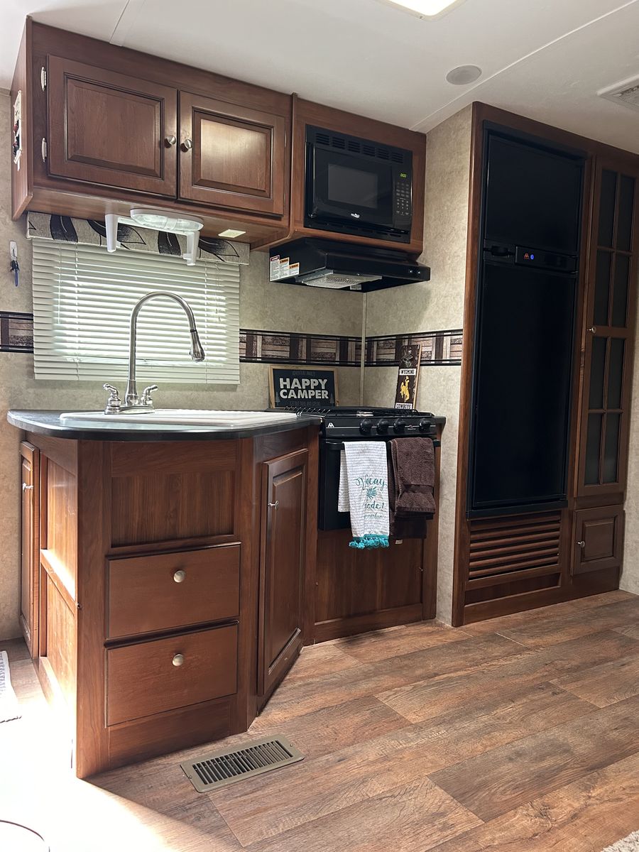VenmoThis has been a great camper. Room for lots of kids with their own bunk house in the back. Comes with a full size queen mattress. Great outdoor entertaining kitchen area. There is some sun damage you can see in the photos. Just cosmetic, you can purchase kits to make it look like new. Text with any questions.