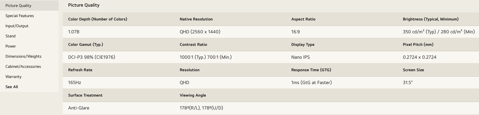 32" QHD (2560 x 1440) Nano IPS Display