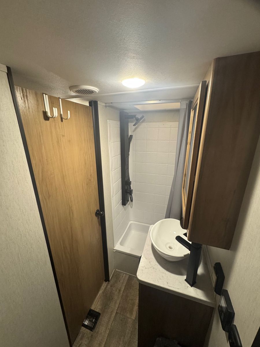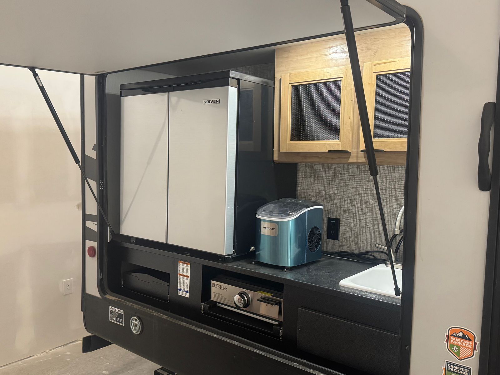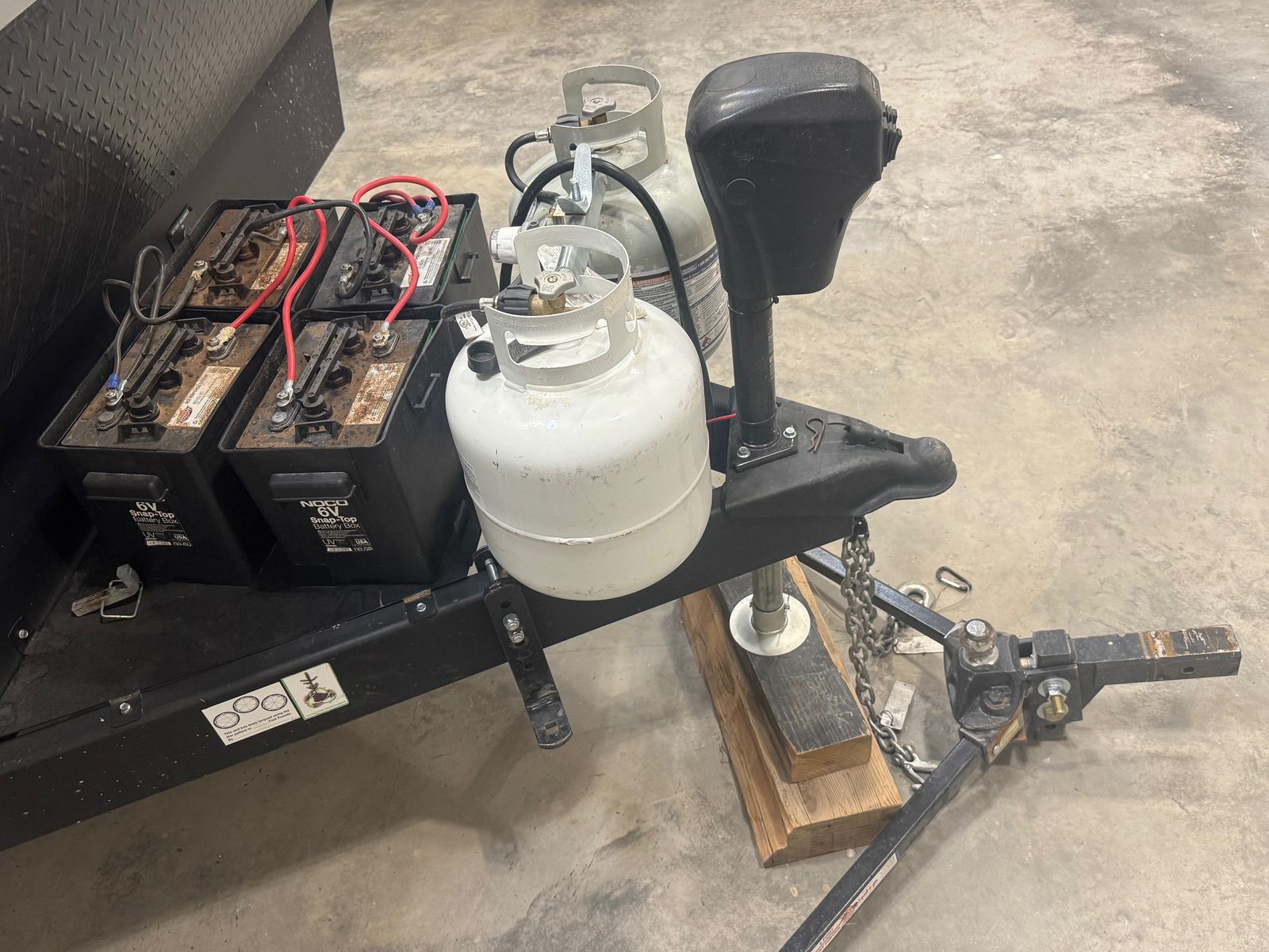 Upgrades and extras include: Blocks and Chocks, Equalizer Hitch, (4) 6V deep cycle battery set up, Solar panels on roof, TV & DVD player instaled, on demand water heater, Power tounge jack, Sewer lines and water lines.