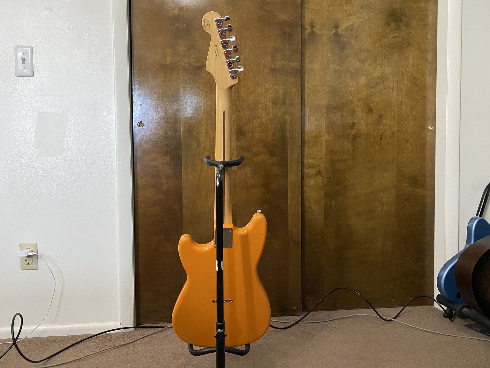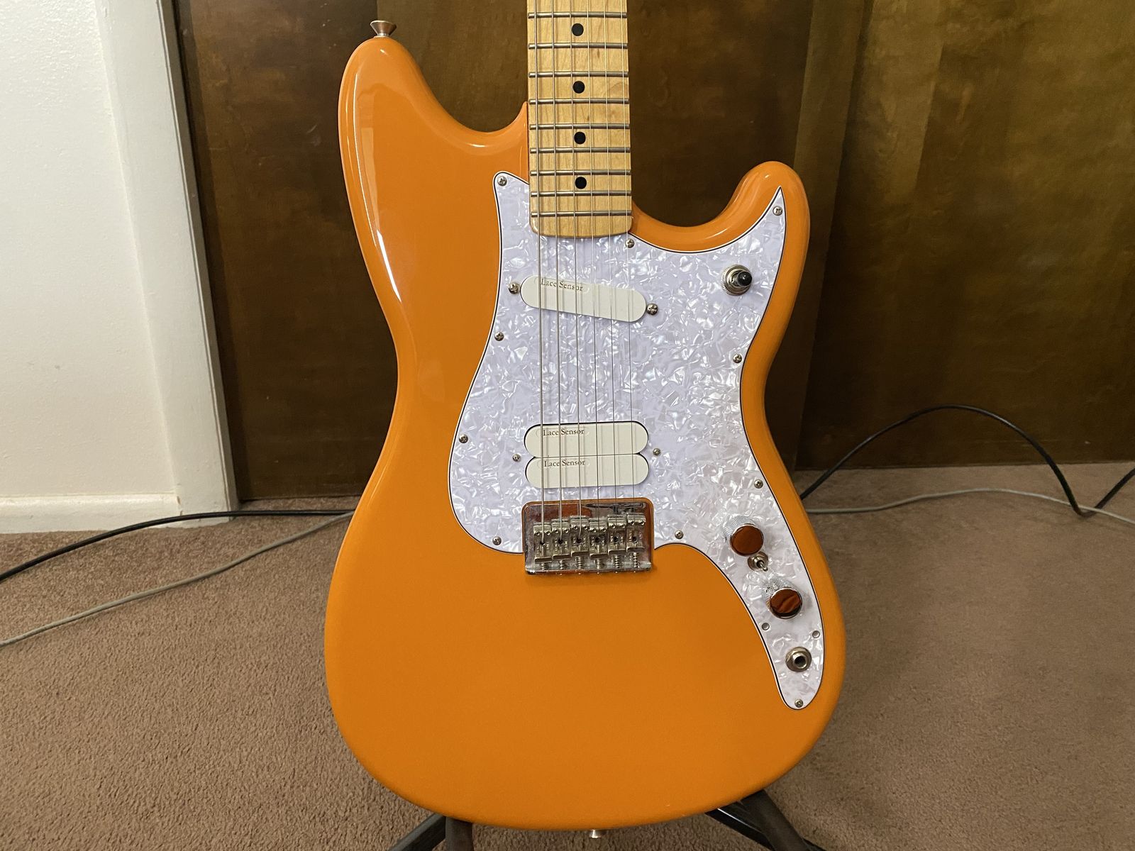 Selling my Fender Duo Sonic MIM. I've upgraded the pickguard and pickups, so this is a unique guitar with improved quality, and a third pickup that isn't present for any of the Duo Sonic's from this time. The Lace sensor pickups are high quality lace sensor gold pickups that give the guitar a much better tone. The neck is a smaller diameter than the standard and is a nice maple finish that looks great and plays great. It's an awesome guitar for anyone looking to get into guitar, or any experienced guitarist with smaller hands, looking for a deal.