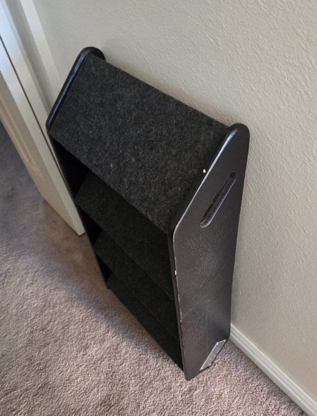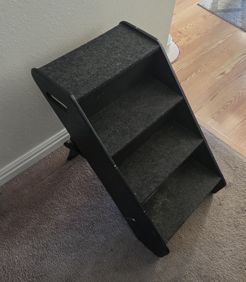 VenmoPet stairs. Foldable for easy storage. Measures 20" high amd 15" wide.