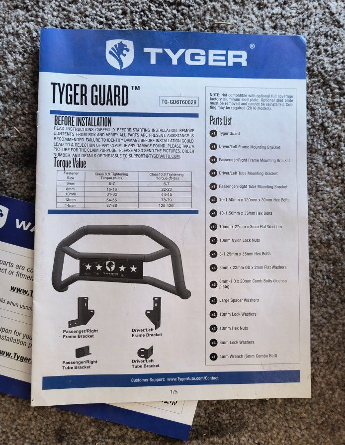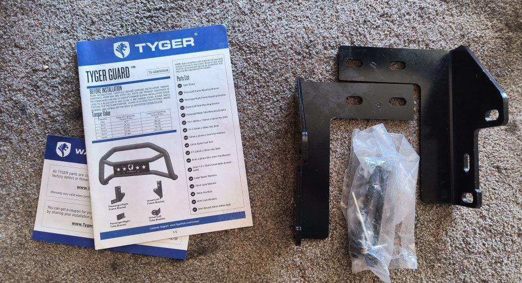Tyger grill/brush guard for gen ii Tacomas. Good condition and includes brand new mounting brackets (I already had brackets on my truck) and hardware. I had this mounted to my 2015 Taco for about 5 months and decided I want to go a more expensive route that includes a winch.
