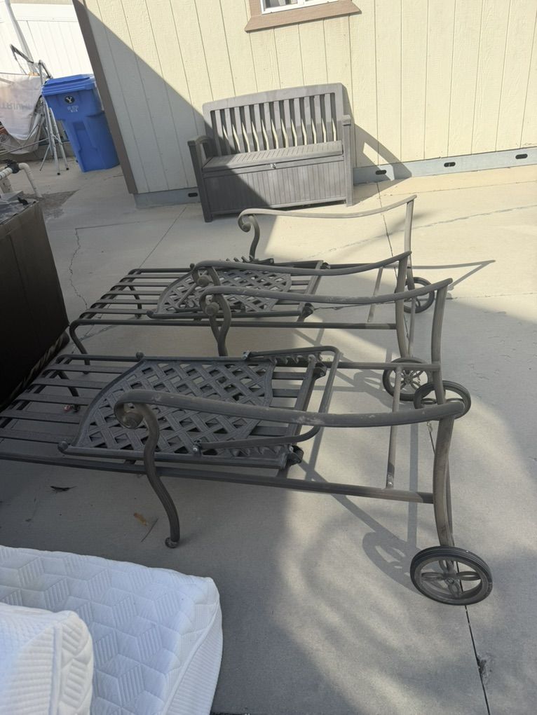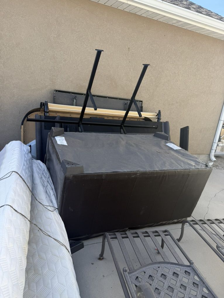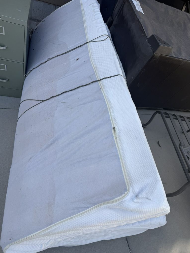 Free metal filing cabinet, purple king size mattress, couch, loungers, air hockey table (no legs) etc. Take some or all for free.