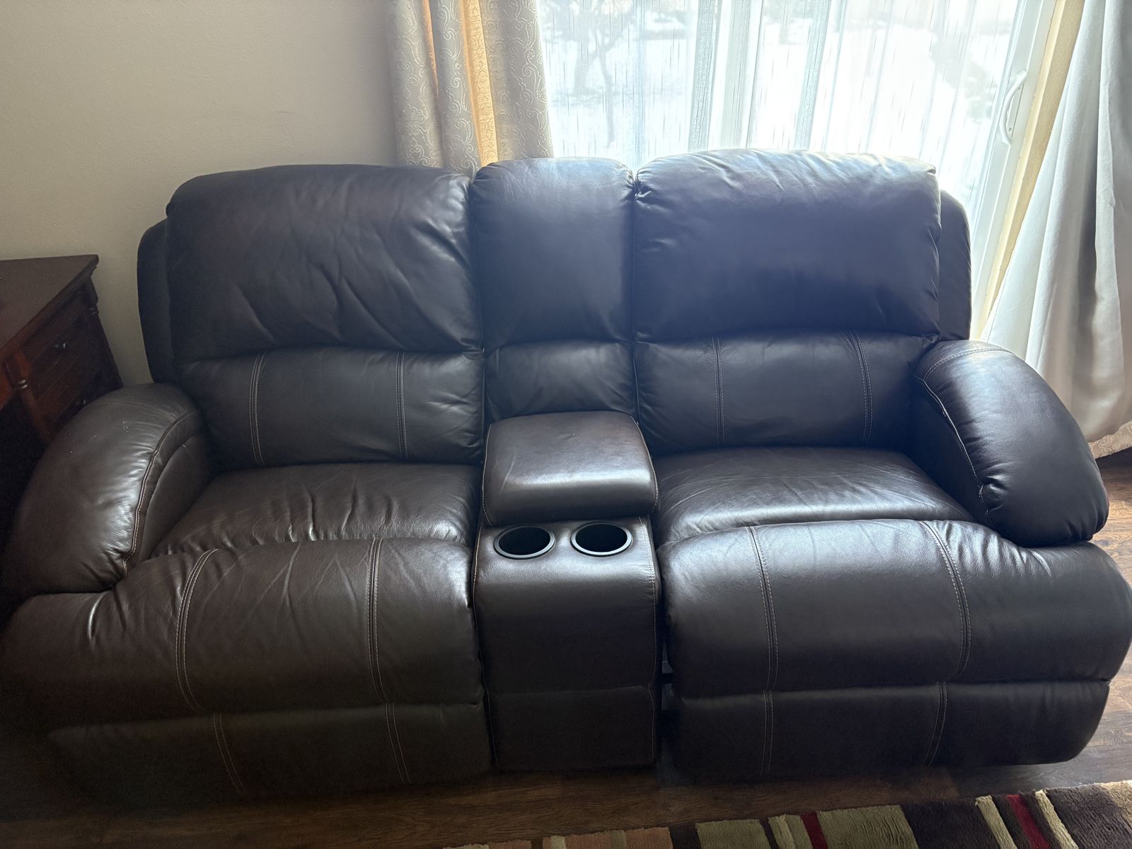 Loveseat and Couch brown leather set in good condition. Both can recline