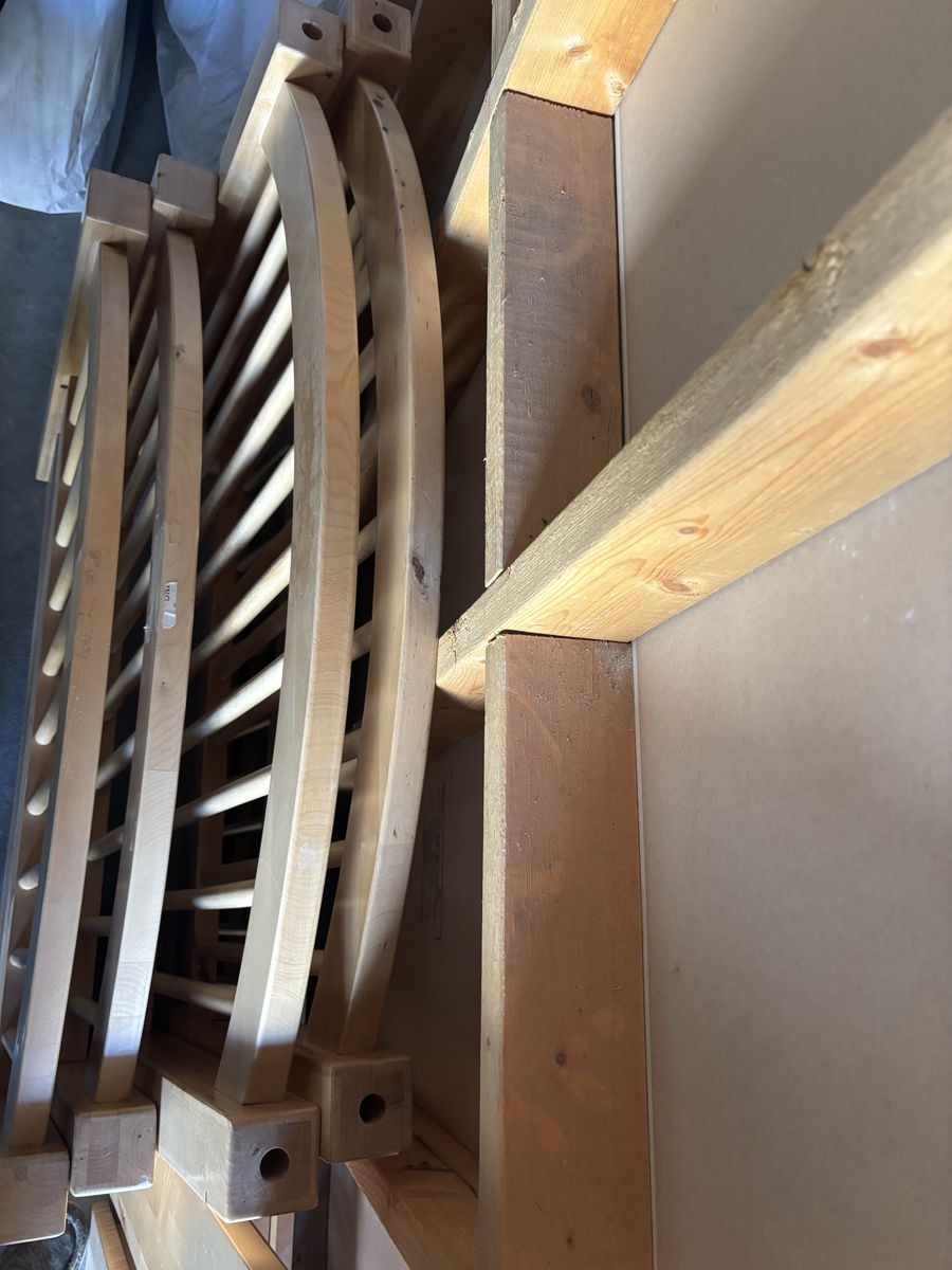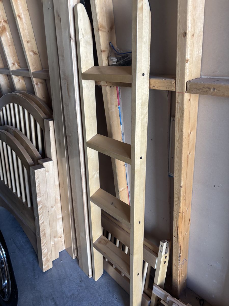 This is a real wood bunk bed that can also be 2 single beds. Very sturdy and easy to put together. This was not a cheap when purchased 20ish years ago, more importantly made of solid good wood. Have mattresses if interested include. Trying to purge. $300 obo