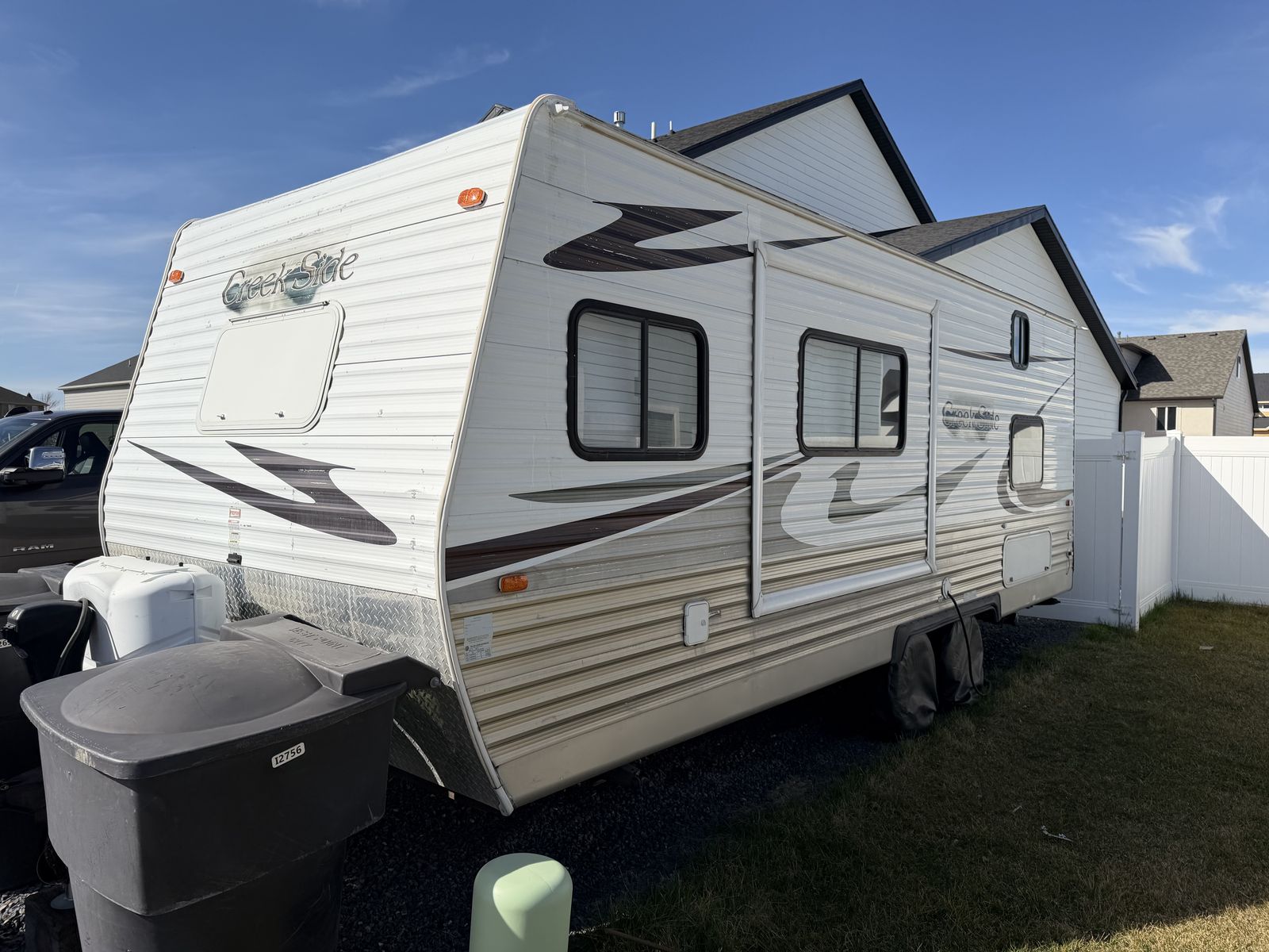 I put 5 new tires on last year. They have less than 500 miles on them. I also replaced the awning fabric last year. Batteries are in great shape. They’ve been on a charger all winter. One propane tank is full, the other is around half full.