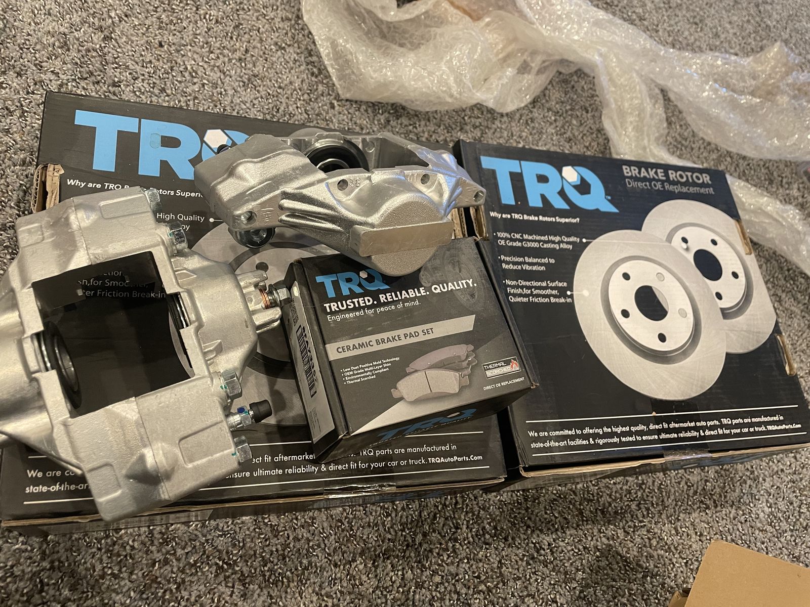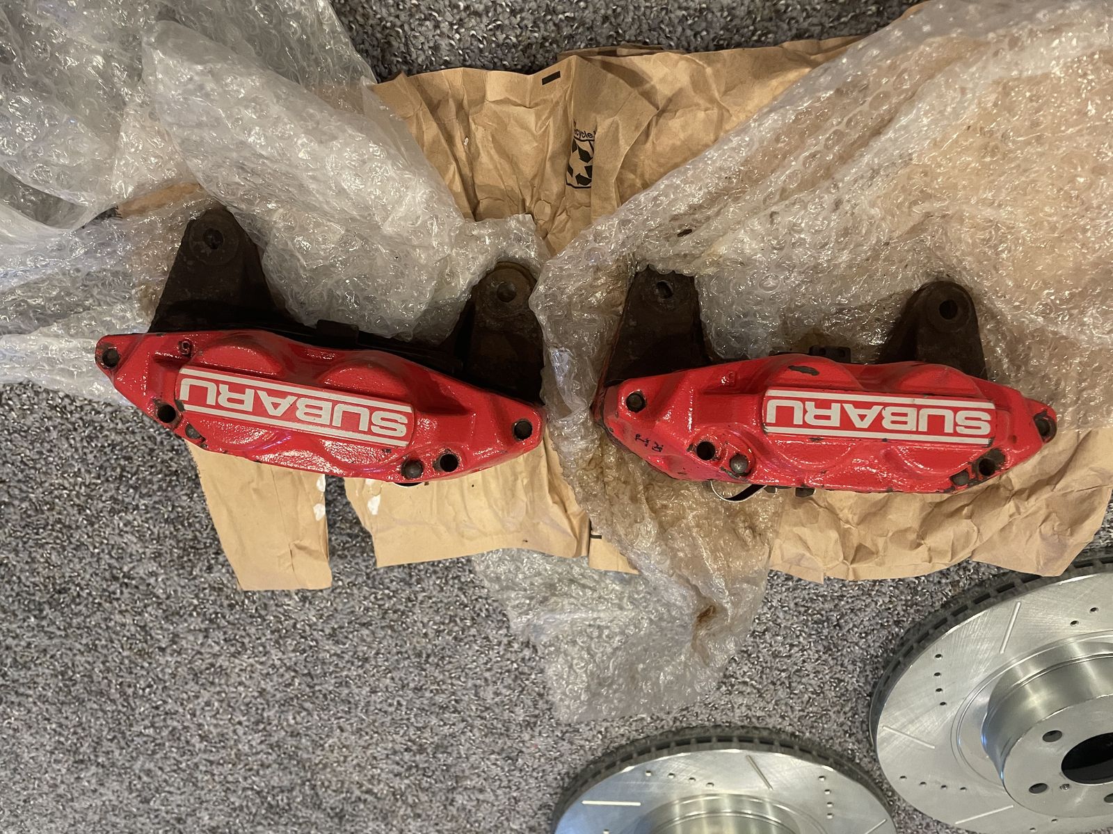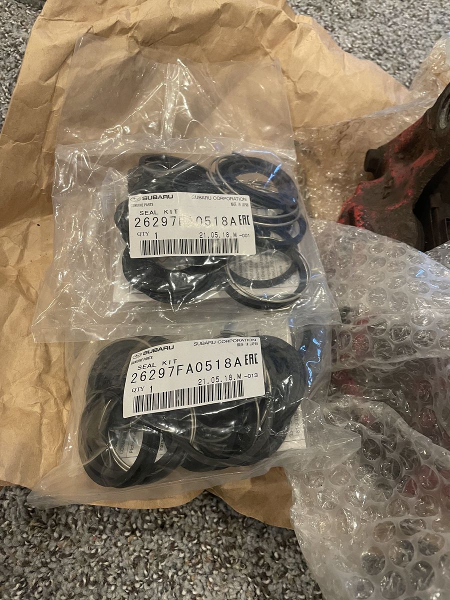 If its up its available. Front calipers off an 07 wrx, needs rebuild comes with seals. Brand new slotted and drilled rotors. Comes with trq complete rear brake package 07 wrx style calipers with pads and rotors. These are direct bolt on for most 5x100 subarus and are a great upgrade for an impreza or forester. Only comes with what you see, $600 OBO Interested in trades mostly gym equipment,computers,subies/hondas but throw whatever trade out there.