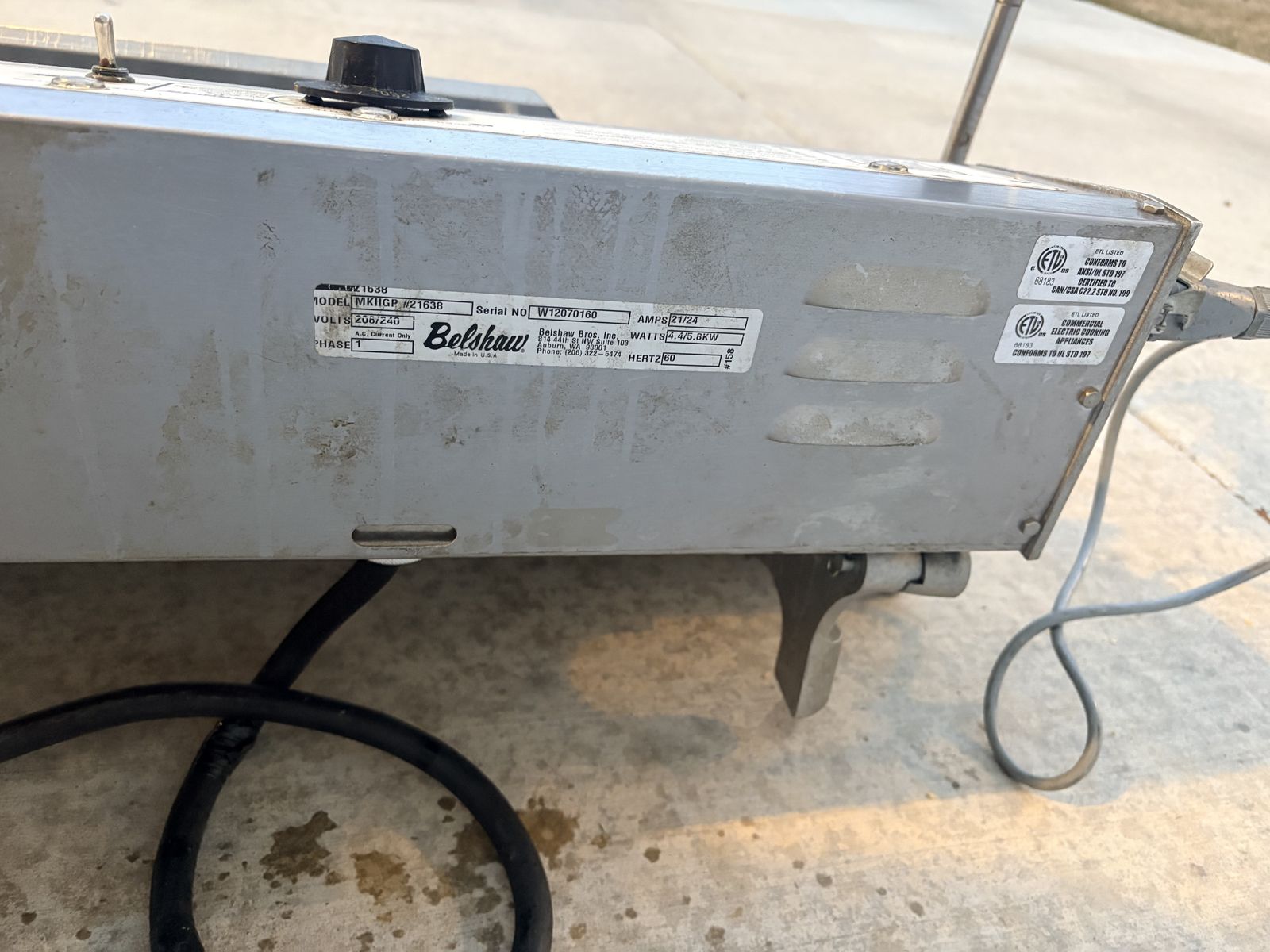 ZelleBelshaw Mark 2 donut fryer Missing the hopper and plunger. Can buy on eBay for ~$300 to replace.