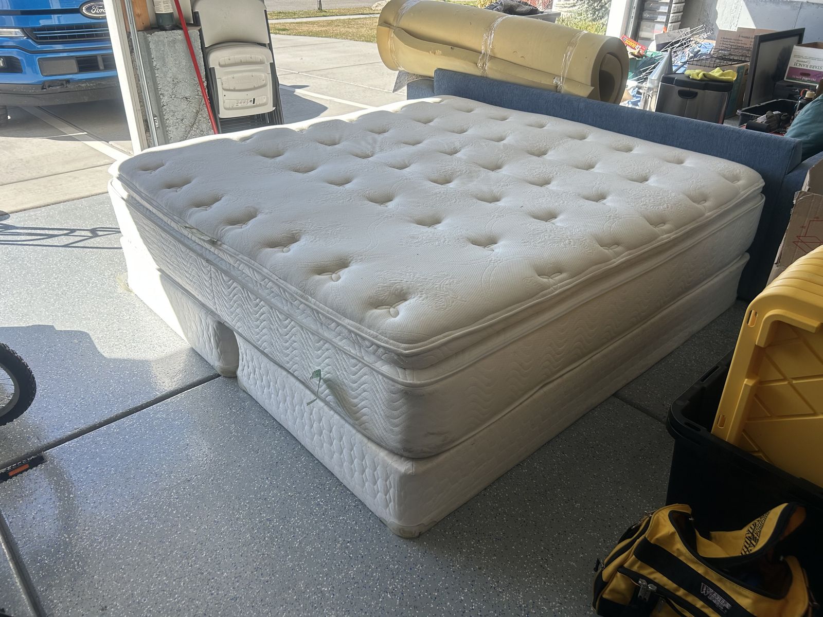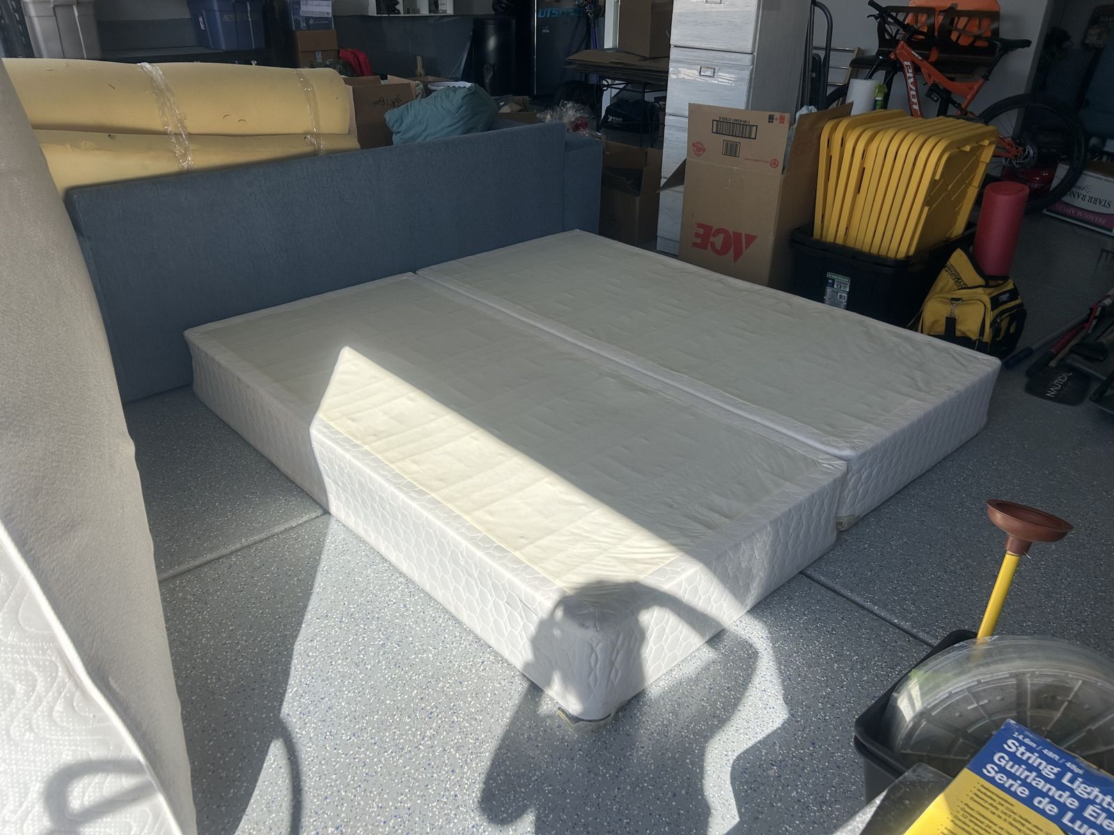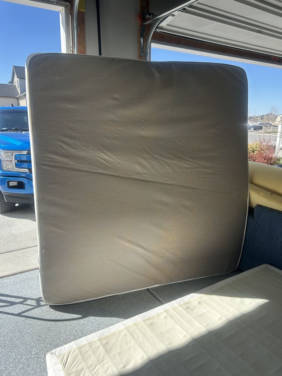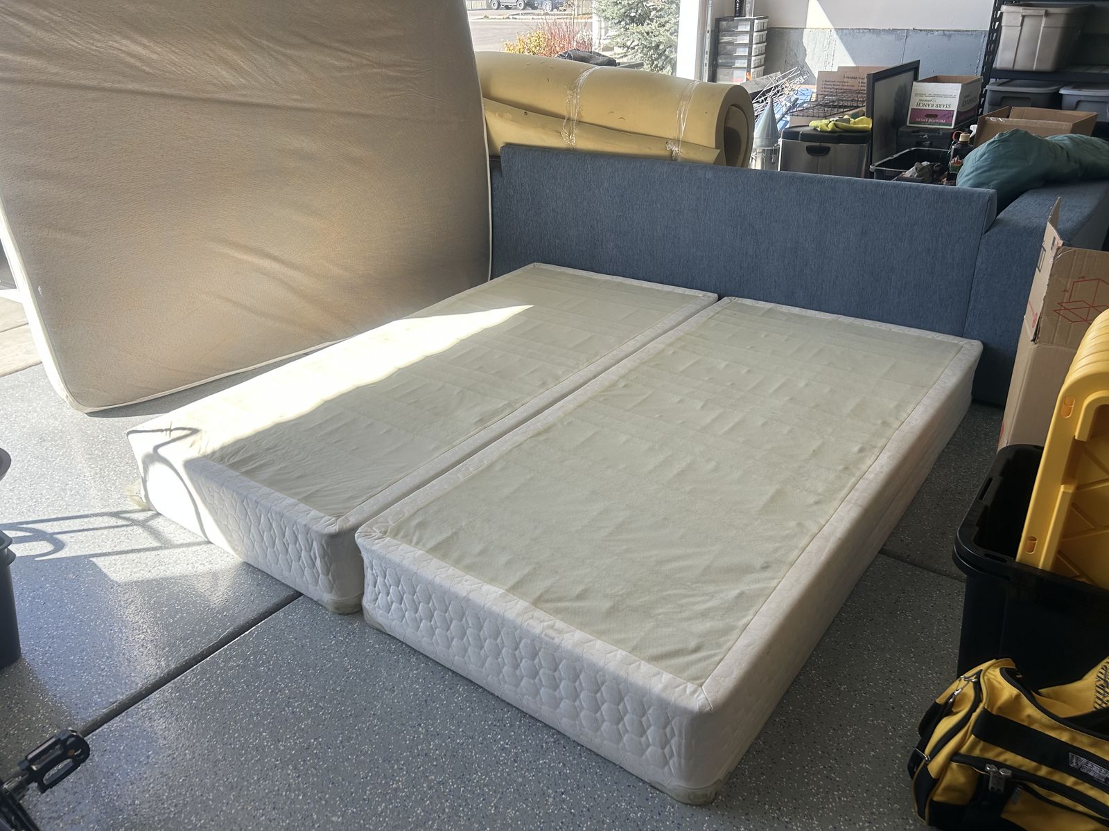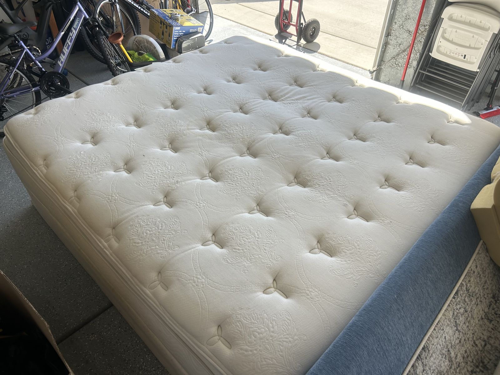 King sized mattress with two box twin box springs. Very comfortable bed. Delivery can be negotiated. Message for more details.