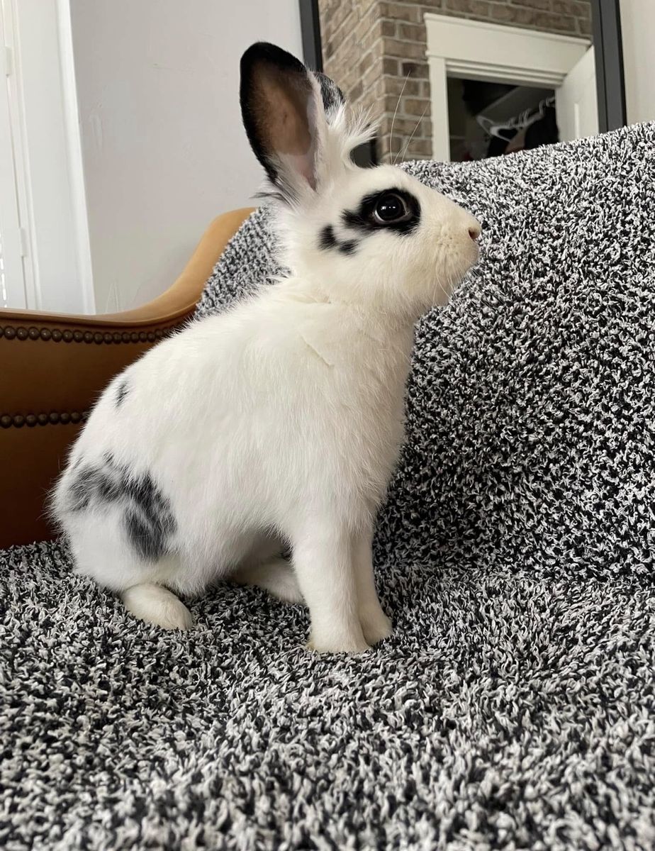 Poe is almost 6 months old and is available to foster to adopt!! He is a spunky little dude with lots of energy and curiosity. Poe came to us as a tiny baby back when we helped Uintah Animal Shelter with the massive hoarding case. An animal control officer found him and his two siblings while clearing out the home and sadly we were not able to find which bunny was his momma so he was our little bottle baby! Poe loves other buns and would love to have a bond mate. He is almost at the age where we can get him neutered, chipped, and vaccinated and is working on litter box training.