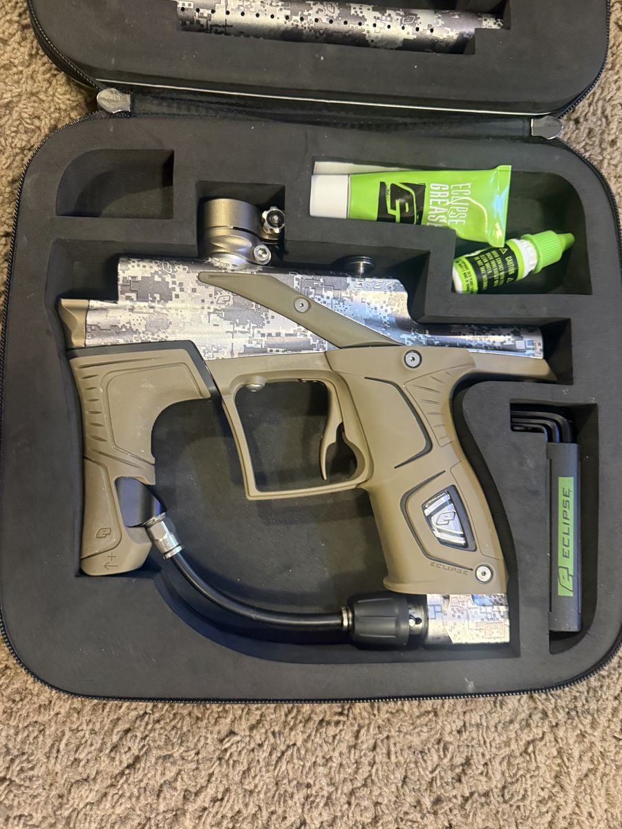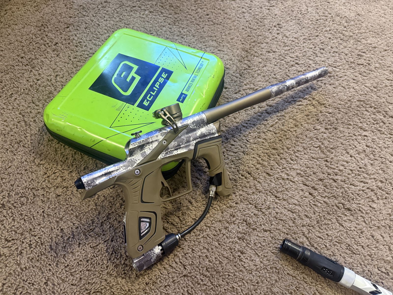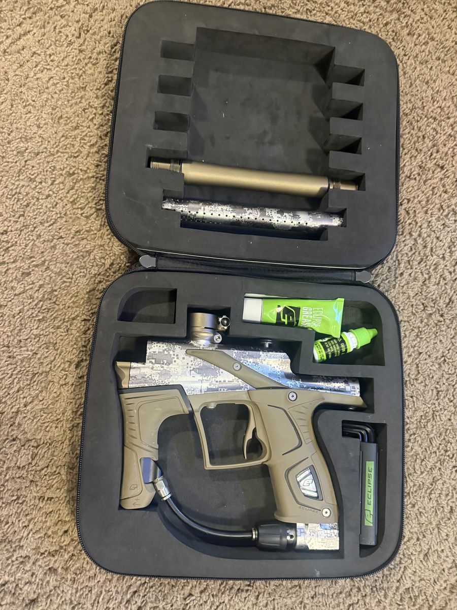 ZelleGreat set up for all levels. Digital urban camo. Has the original two piece barrel and an amazing full HK Lazer barrel with eight inserts. Also has a great high level mask. asking 570, would entertain legitimate offers