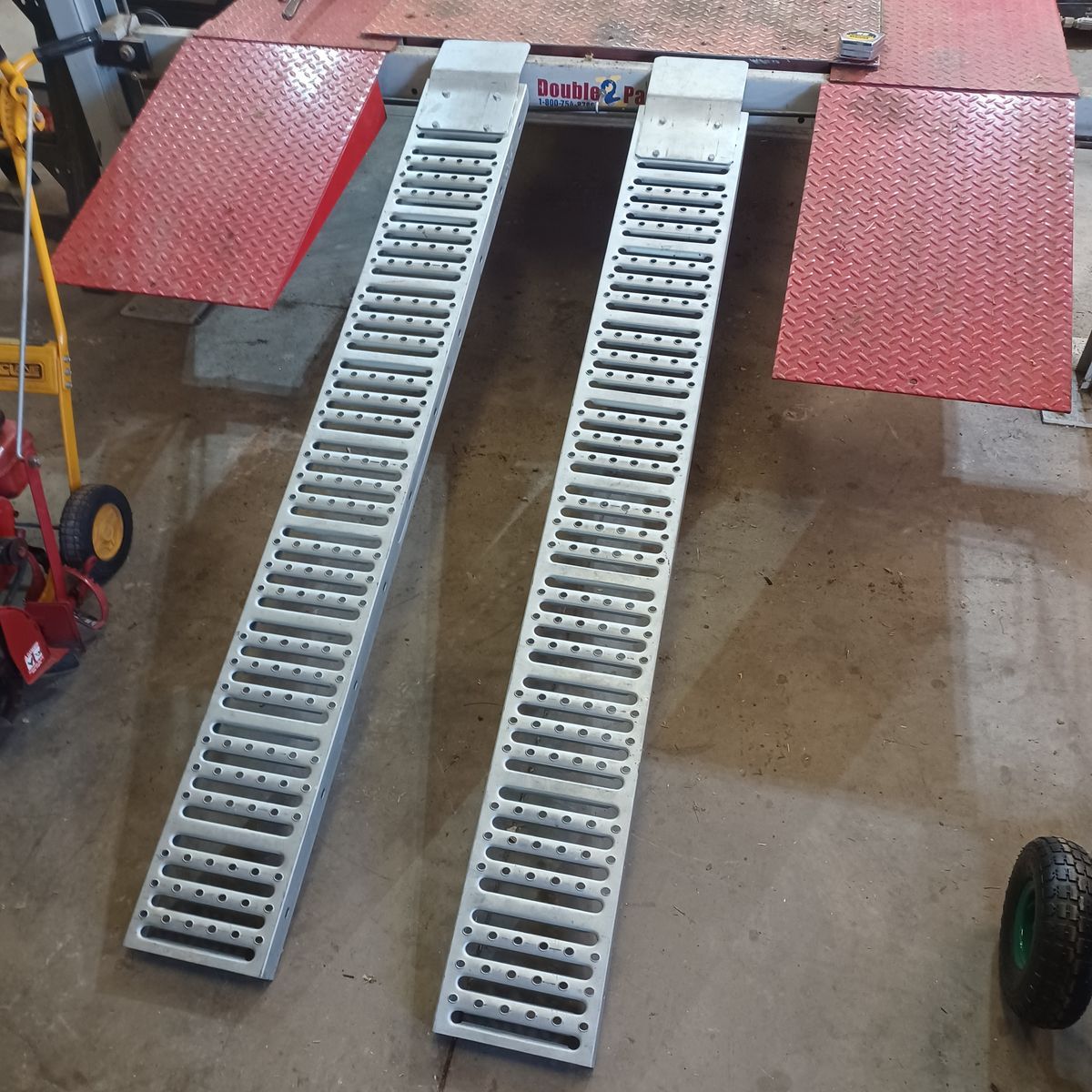 Metal ramps. Dimensions are shown. I believe they are 1000 lb. Ramps. $60 dollars.