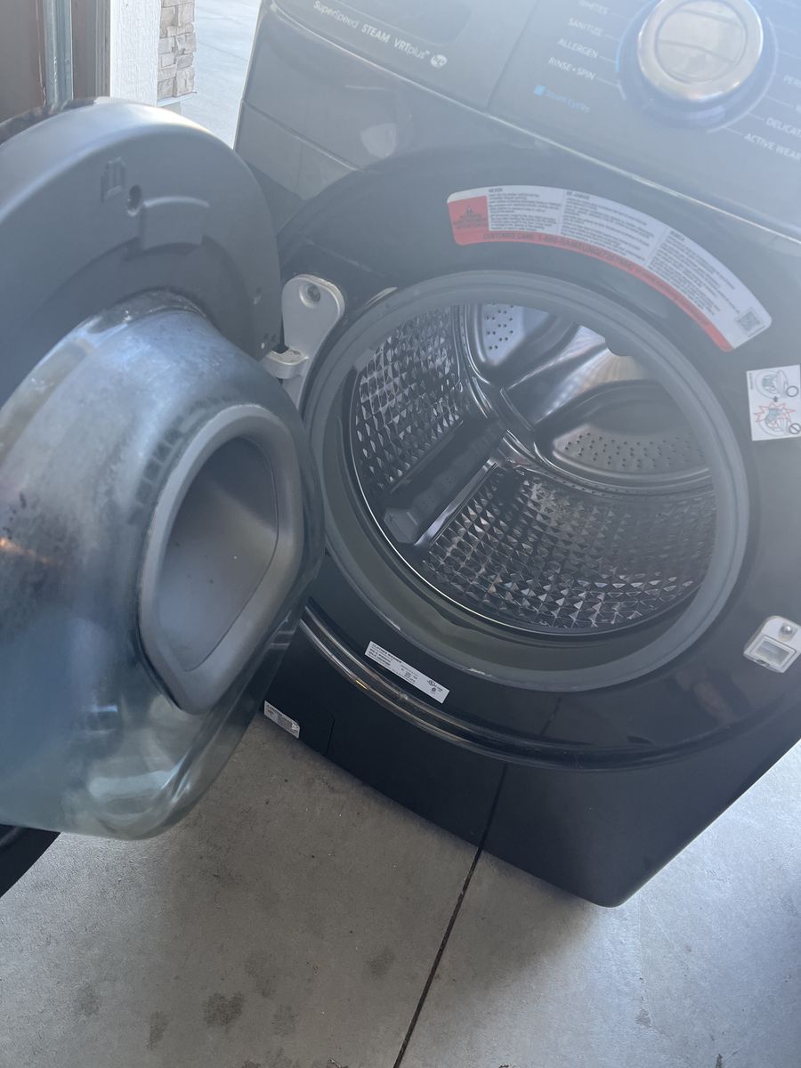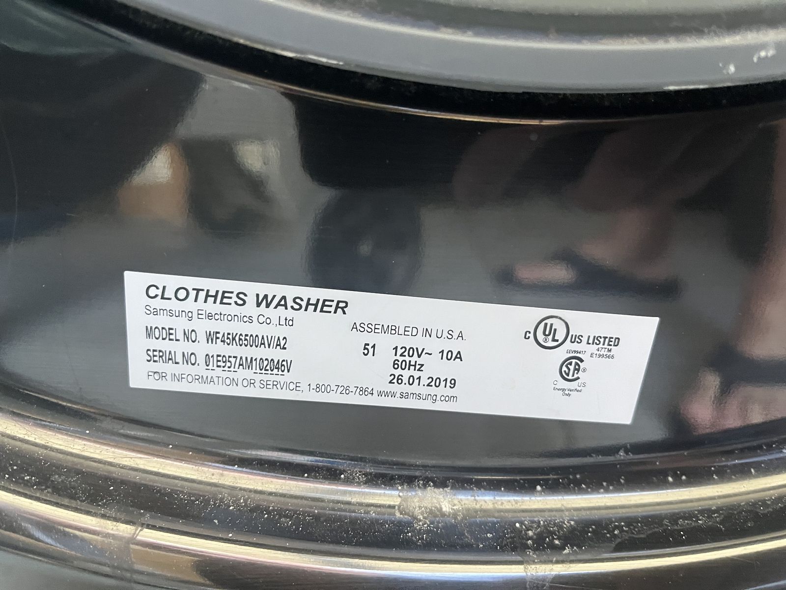 VenmoThe Samsung WF45K6500AV/A2 is a 4.5 cu. ft. capacity, 27-inch front-load washer in black stainless steel, featuring AddWash™ technology to add items after a cycle starts. It includes 14 wash cycles (e.g., Steam, SuperSpeed), 1300 RPM spin speed, Wi-Fi connectivity (smart-enabled), and Vibration Reduction Technology (VRT)