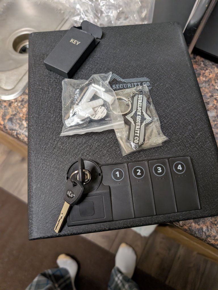 PayPalThe Surelock Security Company Quick touch vault is a sturdy metal vault designed to securely store coins, money, and valuables. With an electronic lock type and emergency override key, this black vault provides reliable protection for your belongings. This 3-year-old vault from China comes with 2 keys and is suitable for keeping your valuable items safe at home. Upgrade your home security with this dependable and efficient vault from Surelock Security Company. I used it to store coin collection in, sold the collection and now I don't need the safe. It fits under your bed.