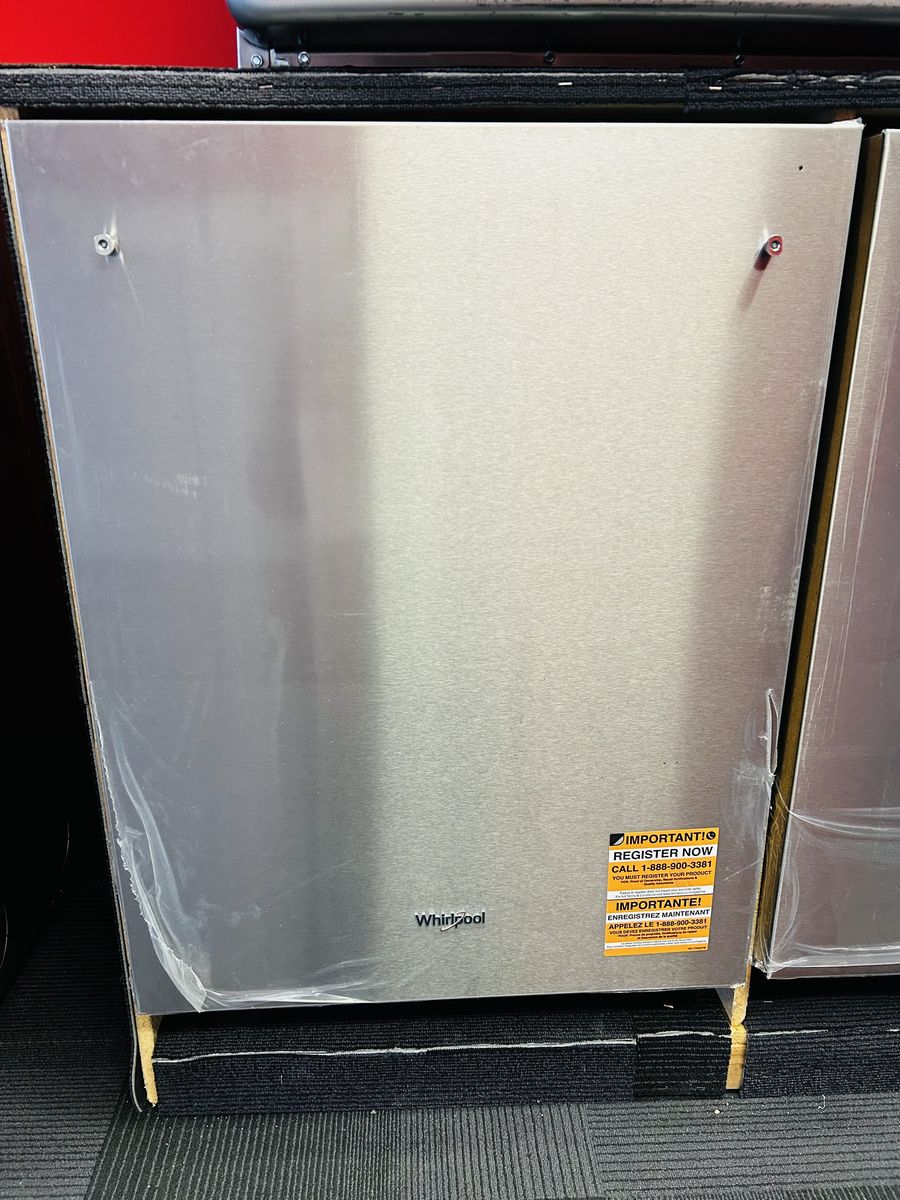 Whirlpool stainless steel dishwasher fan drying technology stainless steel tub 3 racks extended soak heavy boost normal quick heat dry sani rinse high temp etc..Brand New/Open Box. 45 day warranty, delivery/install available.