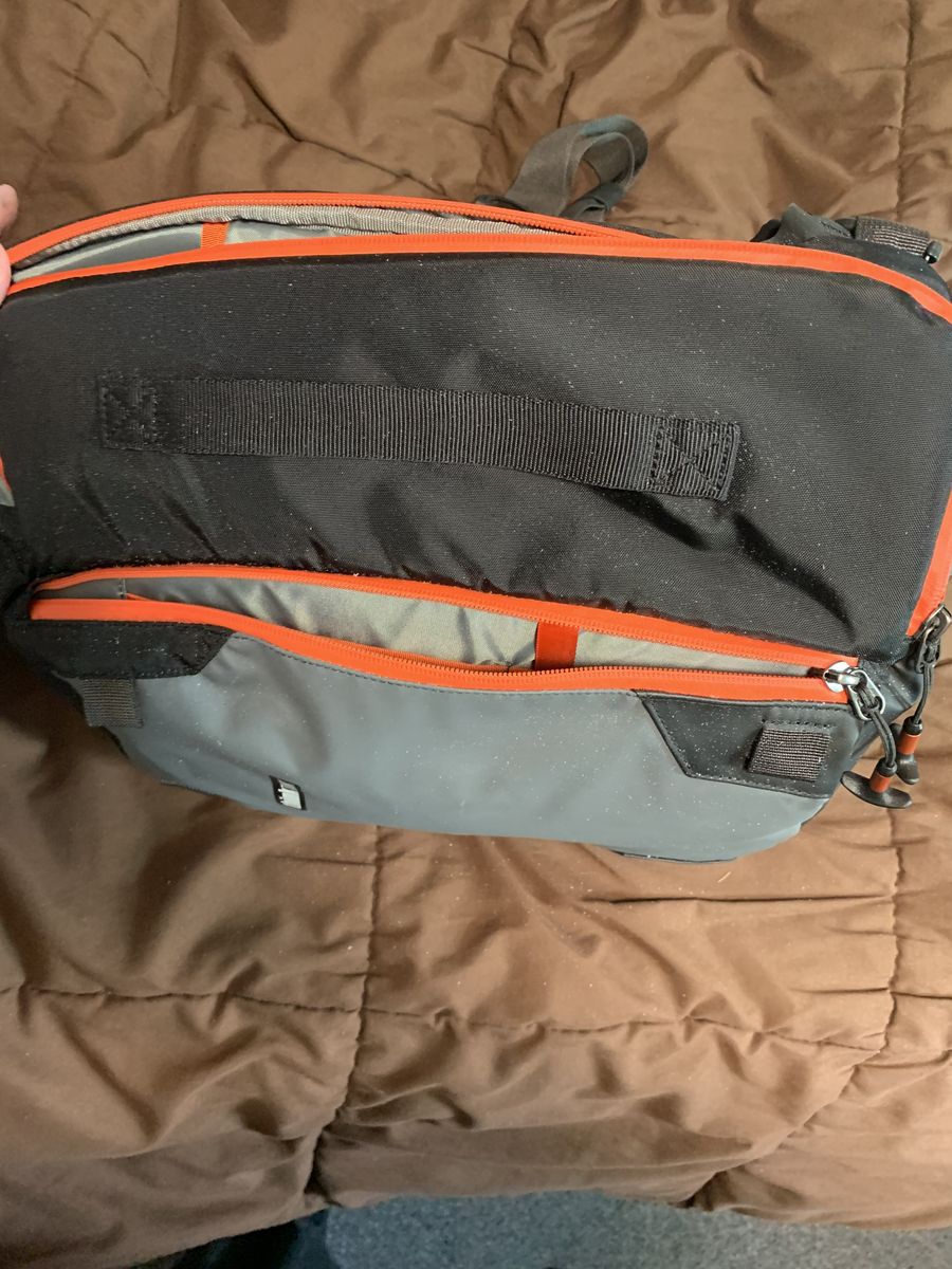 Think Tank PhotoCross 13 Sling Photo Bag, Designer Orange. Sells for $157 but I will let it go for $100. Like new, I bought it thinking it would be perfect for what I needed. Large front pocket and rain cover. Will hold a tripod.