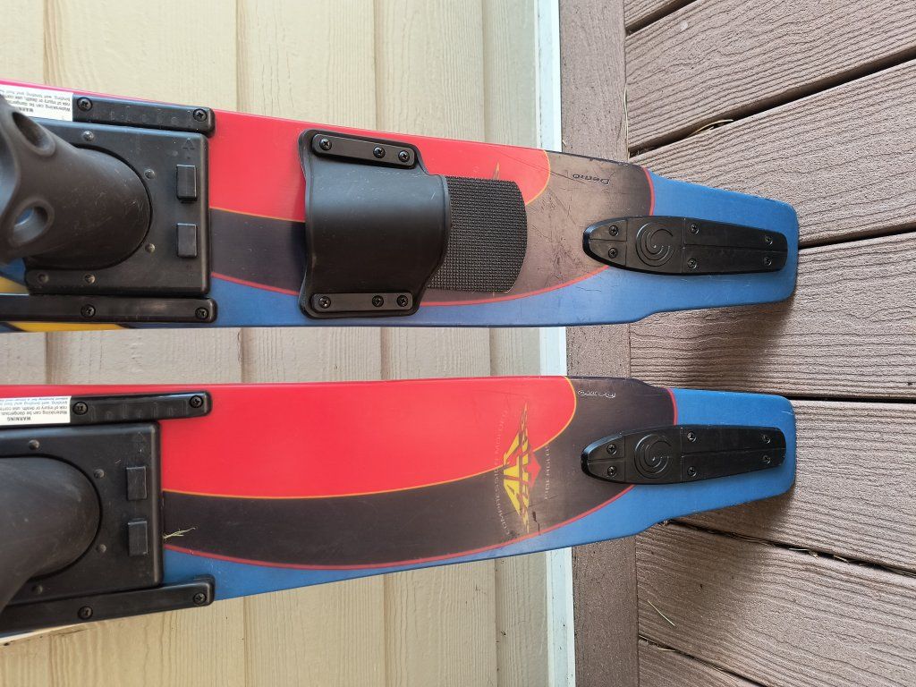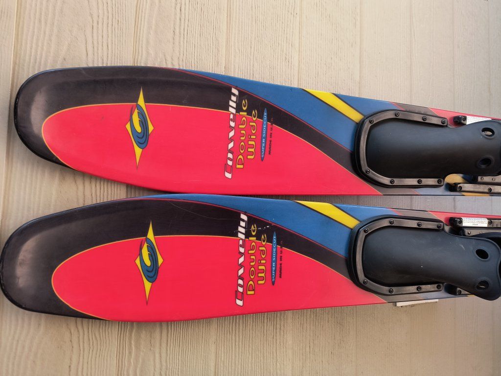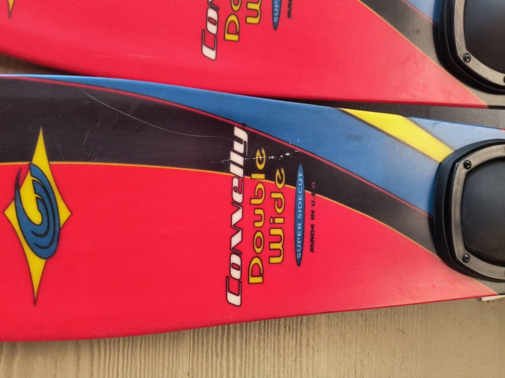 Nice pair of Connelly Double Wide Super Sidecut waterskis. Minimal wear. Youth sized boots. Not sure of the foot size range. Short and wide for an easy learning experience. I have several pairs of these and will be listing them one at a time.