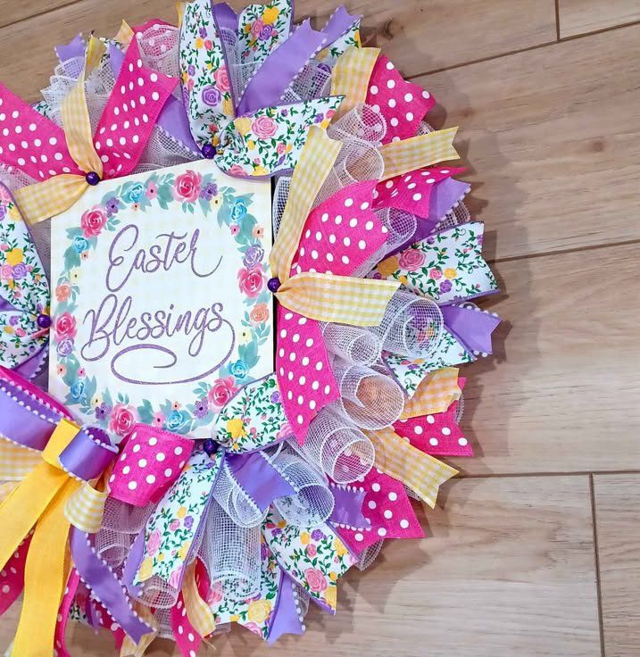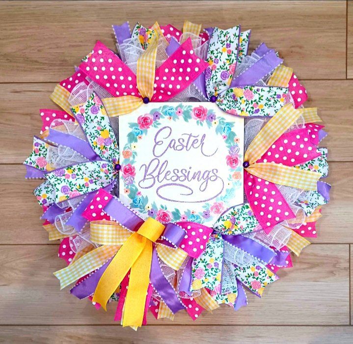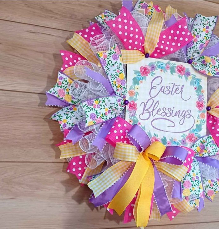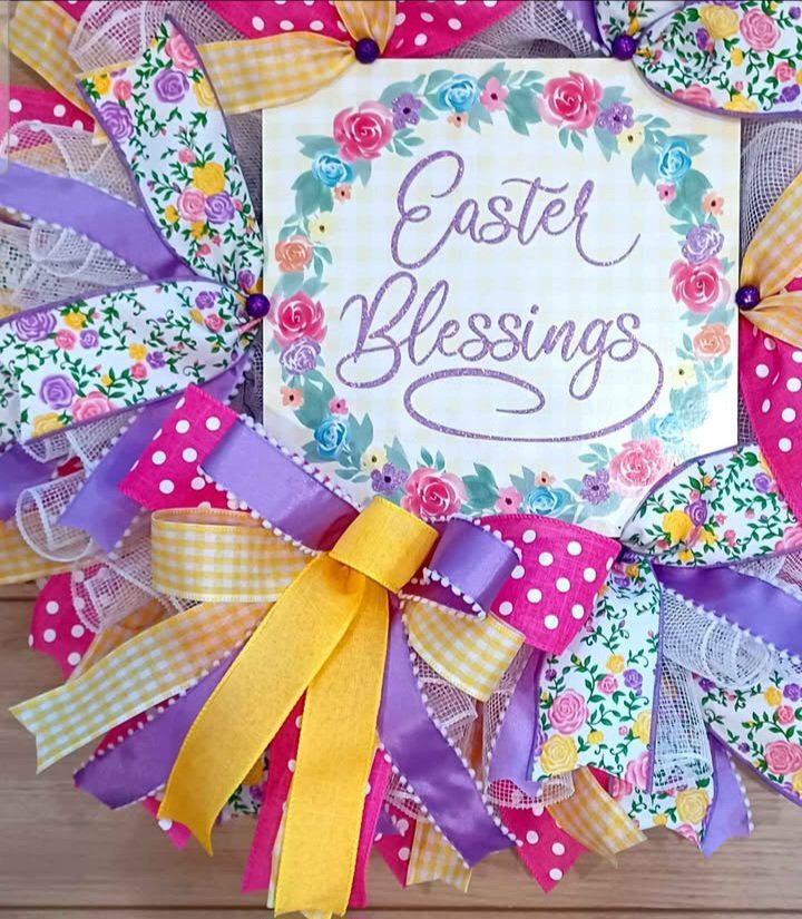 Beautiful 24" decorative wreath featuring the message “Easter Blessing,” perfect to add a special touch to your door this season. Adjustable, customizable to your liking, and shipping available.