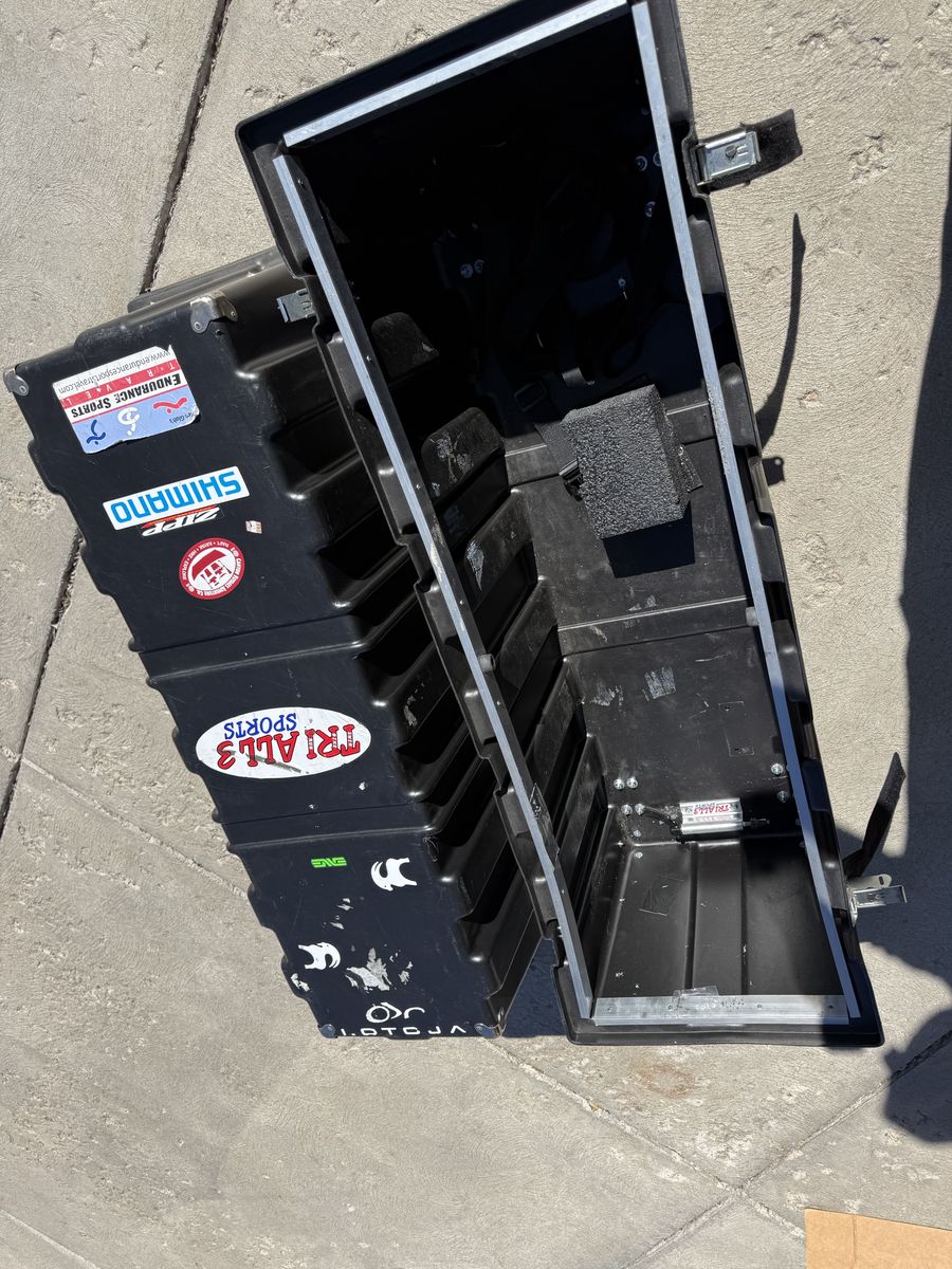 Single bike case, road or mountain, made of High Molecular Weight Polyethylene, lockable steel latch system, and four heavy-duty casters. Room room for extra gear, two outer straps for extra security.