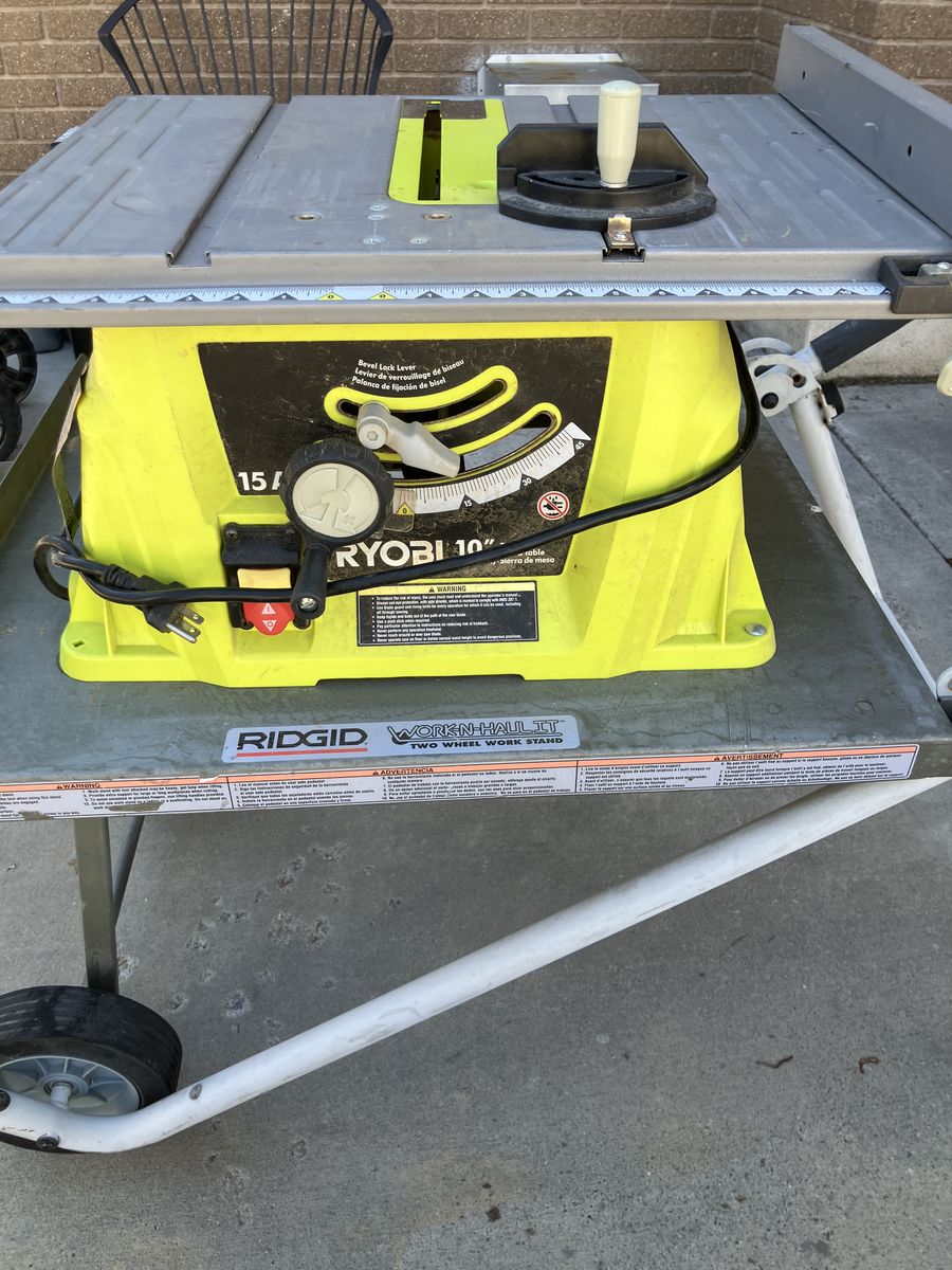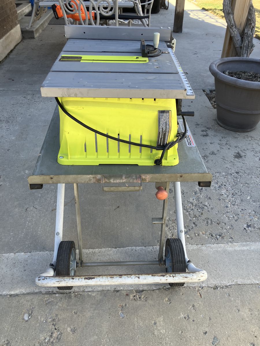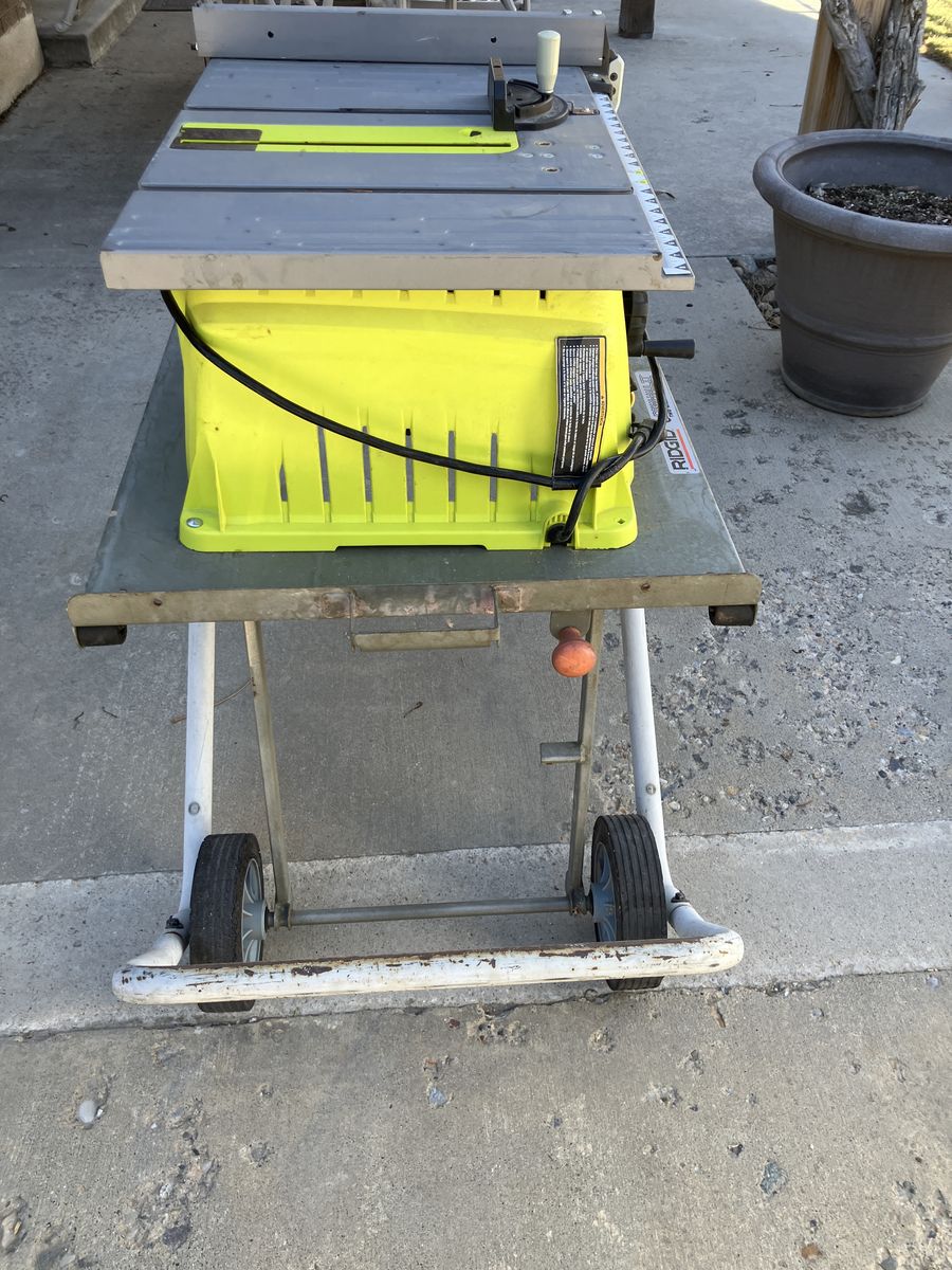 VenmoClean Table saw with very little usage, sharp blade and extra sturdy folding stand with wheels. The saw is like new and the stand is an older model Ridgid Stand before it was owned by Home Depot. If you would like to see additional photos let me know