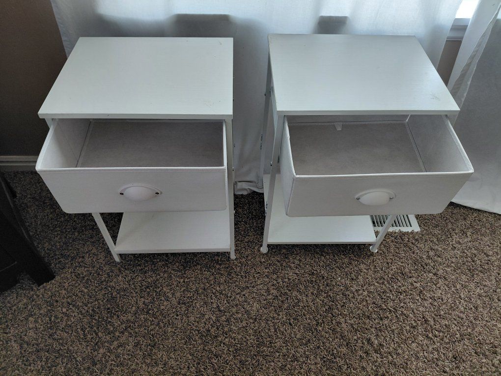CashAppCute matching white nightstands / end tables with drawer, each one measures 23" tall 15" wide and 12" deep. Very good condition. $20 each or $35 for both.