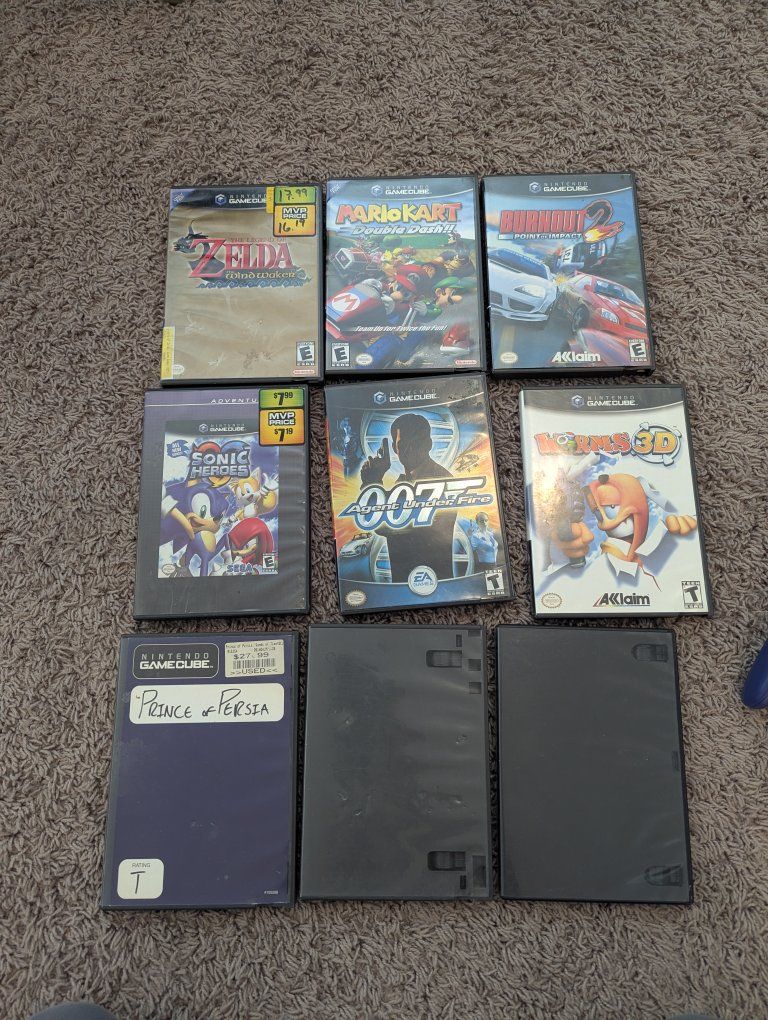 GooglePayI'm selling all my games, controllers and GameCube system all in one. System is in great working condition, as are controllers except for the original indigo controller - the main joystick works but is loose. includes all necessary cables. comes with 9 games - Windwaker, Mario Kart, sonic, need for speed underground, need for speed carbon, burnout 2, worms 3d, Prince of persia, and James bond. all games work great. also comes with Memory card. open to offers!