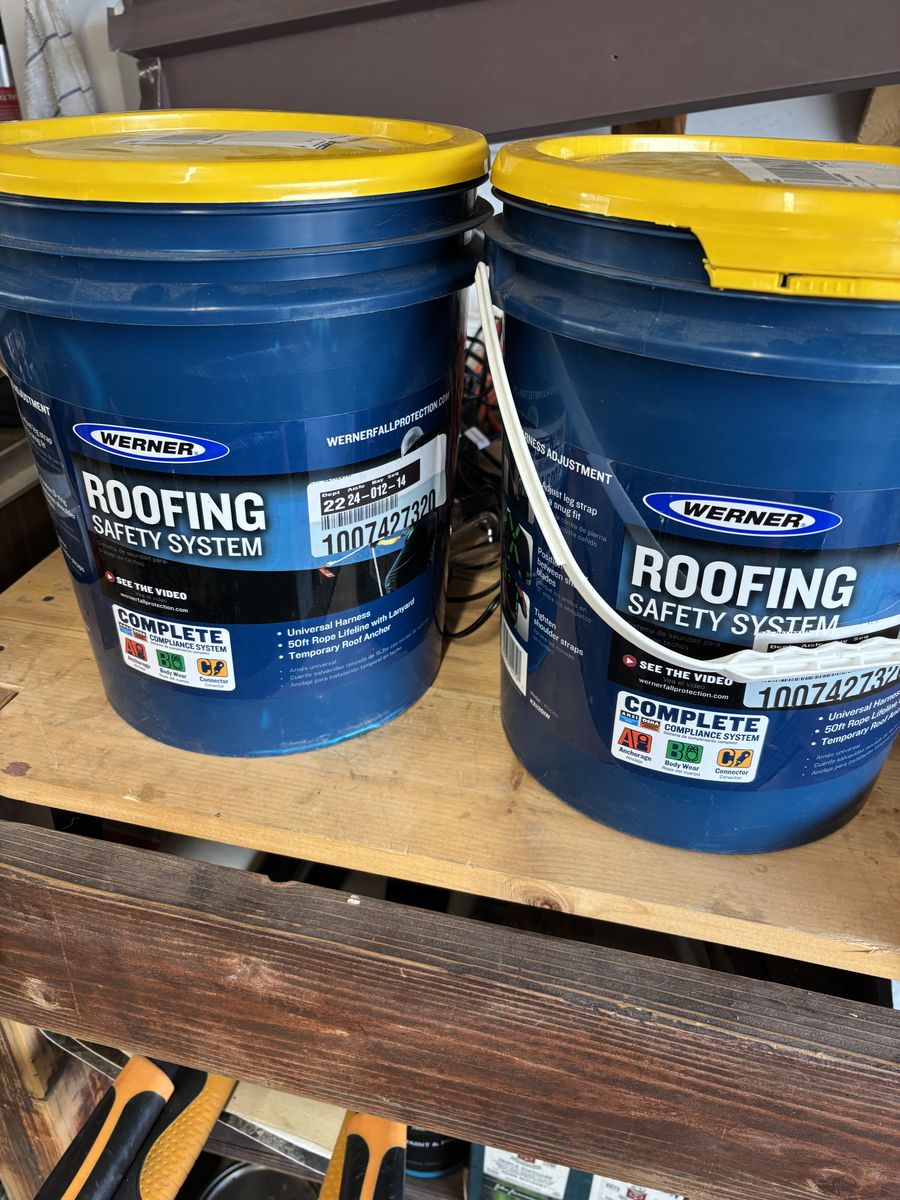 Venmocomplete roofers harness kits used for about three days each. Cost $100 at Home Depot.