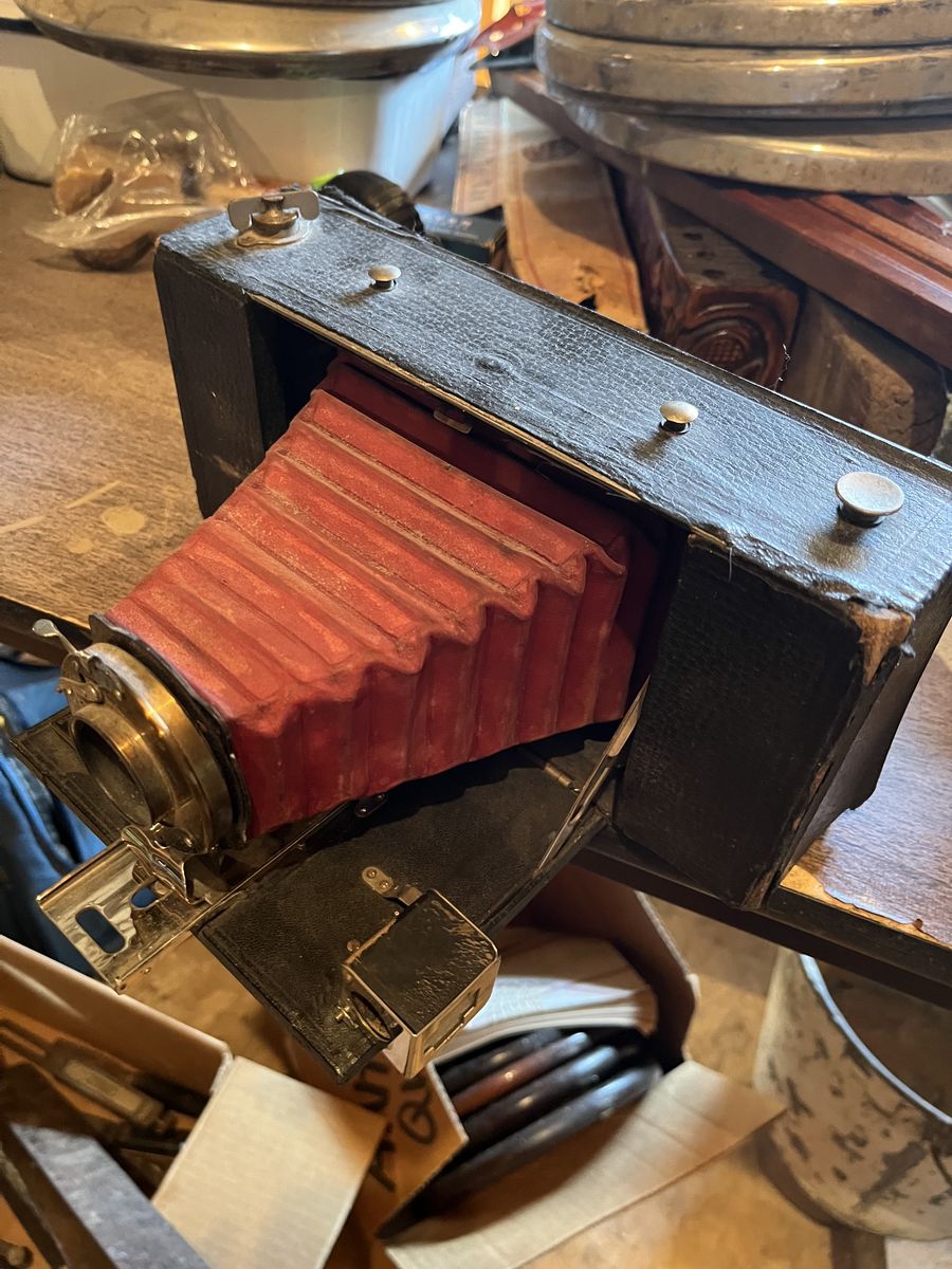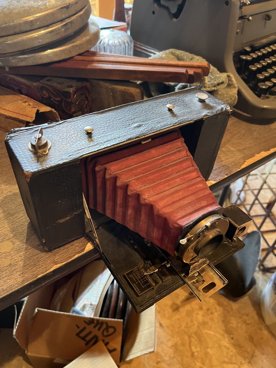 Cool old camera…..great display piece. Fun item for photo enthusiasts!!!