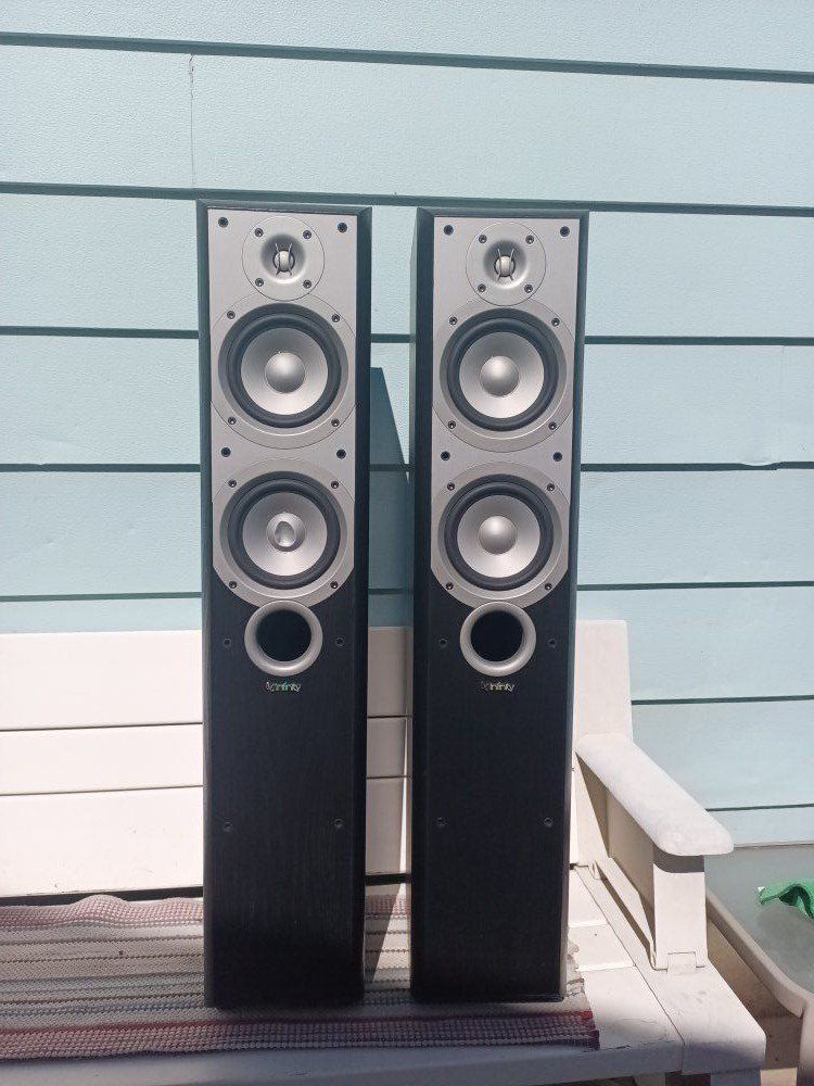INFINITY PREMUS 250 TOWER SPEAKERS, in good condition, grills have one missing grill pig, and half have been glued on, grill fabric have some ware,, good floor bass pads.