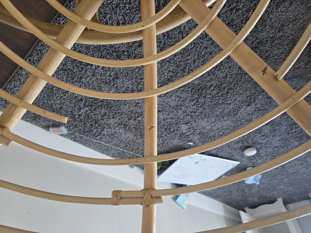 Papasan base with no cushion. Missing a piece of wood in between two slats, but still works well.