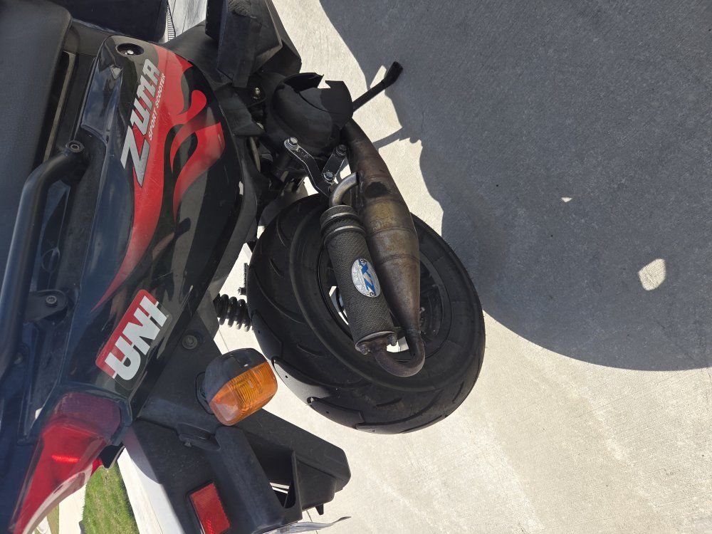 Runs great and is piped. Has a fresh battery and starts right up. Hits 35 mph but can go up to 40 mph depending on weight and the road.