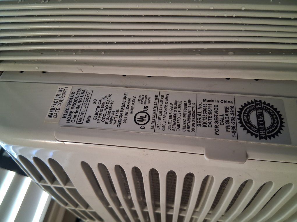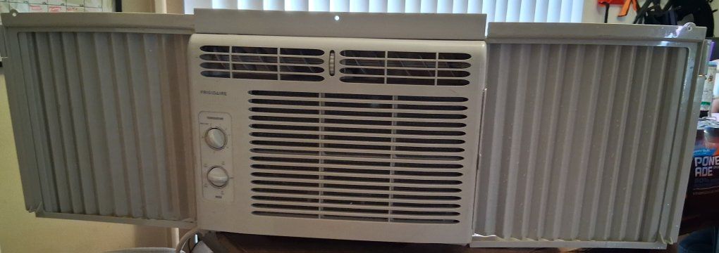 Frigidaire window air conditioner It features a 5,000 BTU cooling capacity, ideal for small rooms up to 150 square feet. The design includes adjustable side panels for easy installation in window widths between 23 and 36 inches.