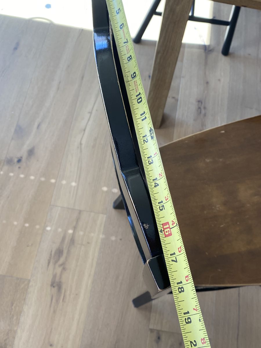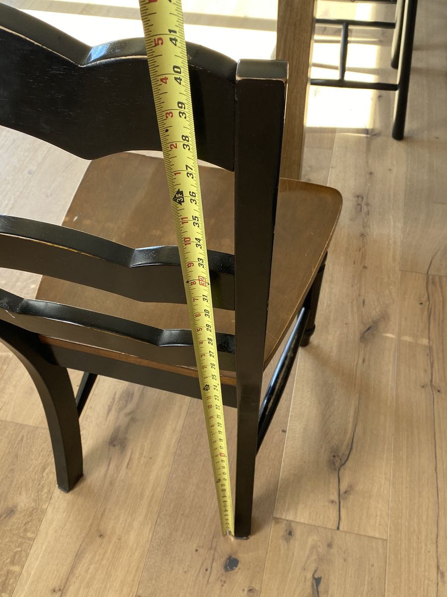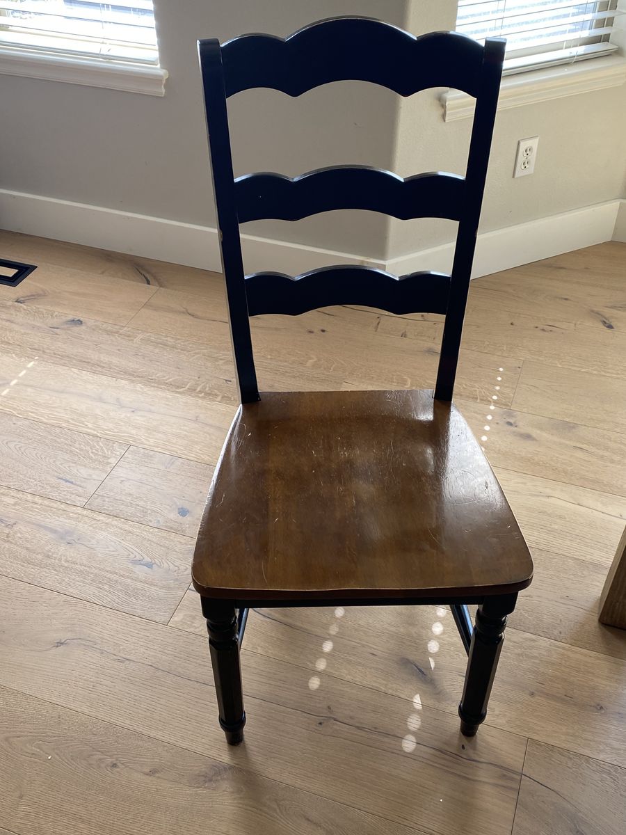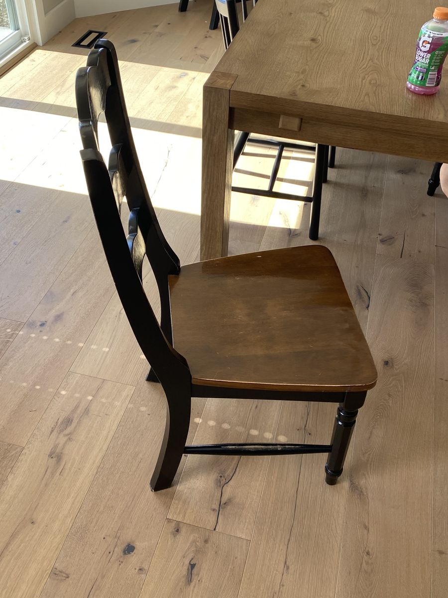 Black and walnut dining chairs. Very sturdy and comfortable.