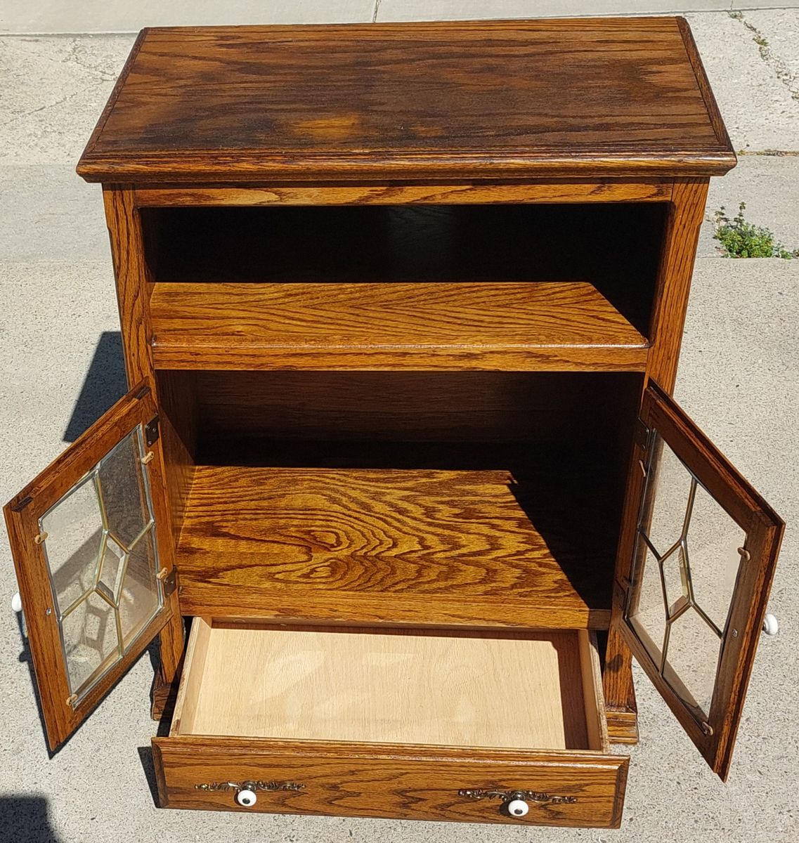 VenmoThis is an oak cabinet with drawer. It has doors opening to storage space. The drawer and doors work great. It measures 36" tall by 28" wide by 17" deep. No holds. FCFS with CASH or Venmo. In Murray. 435-249-1305.