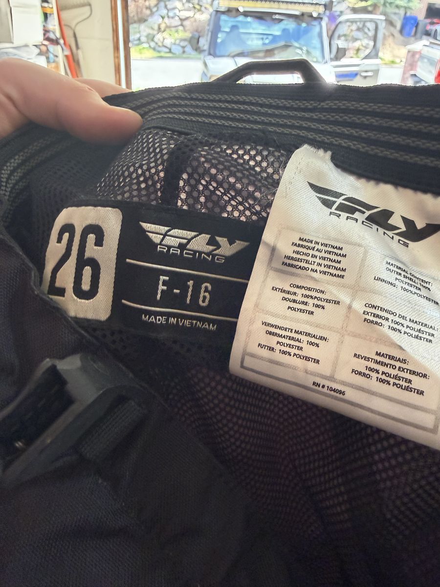 VenmoGently used helmet Size 53-54, w/goggles. Fly racing pants size 26/F16. No need to ask if they're available; if you're reading this they're available.