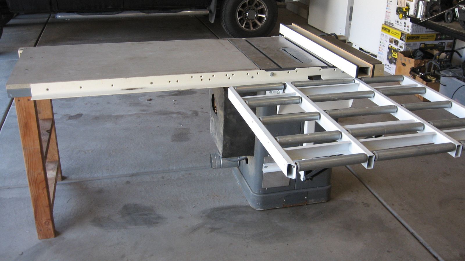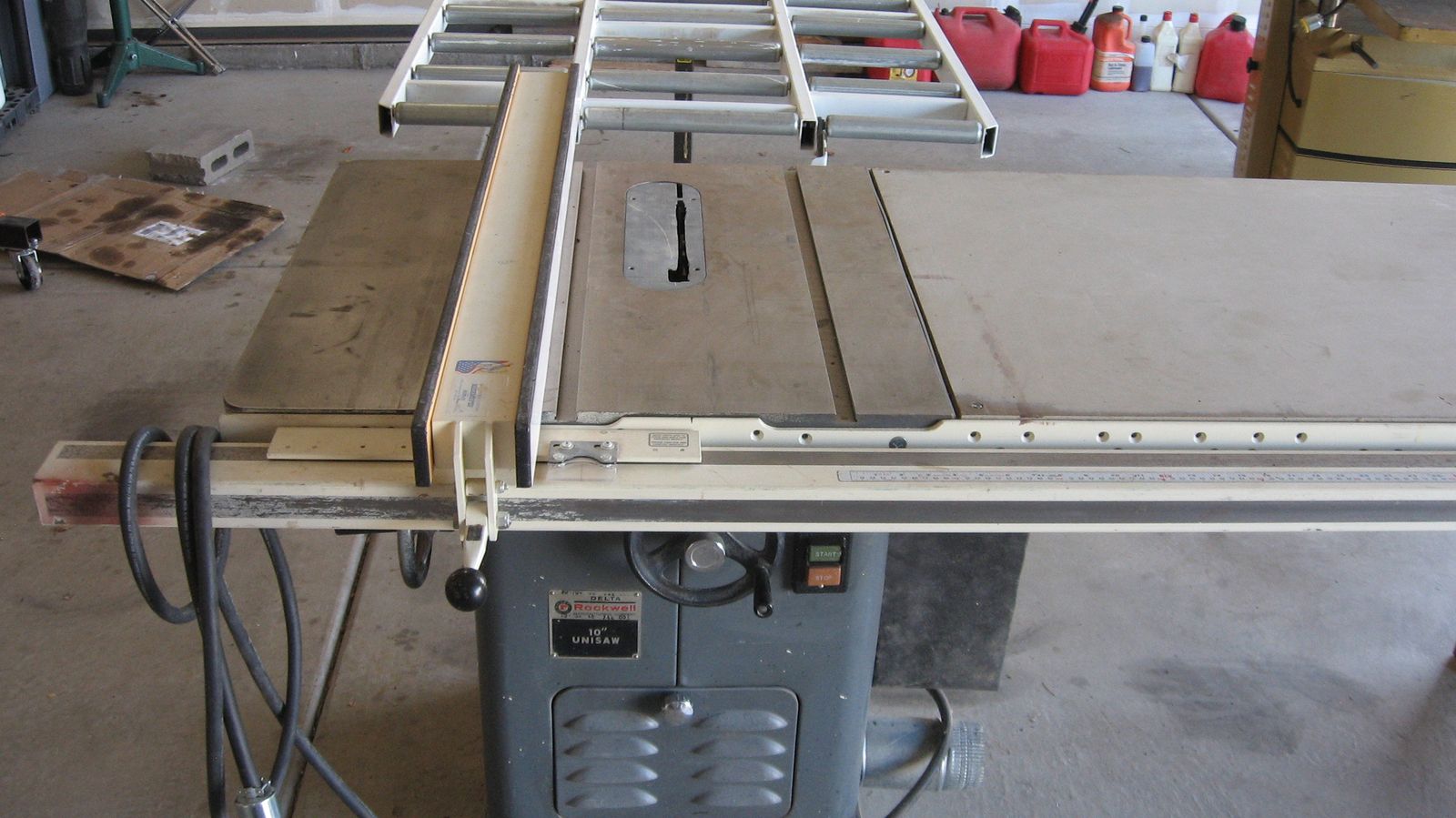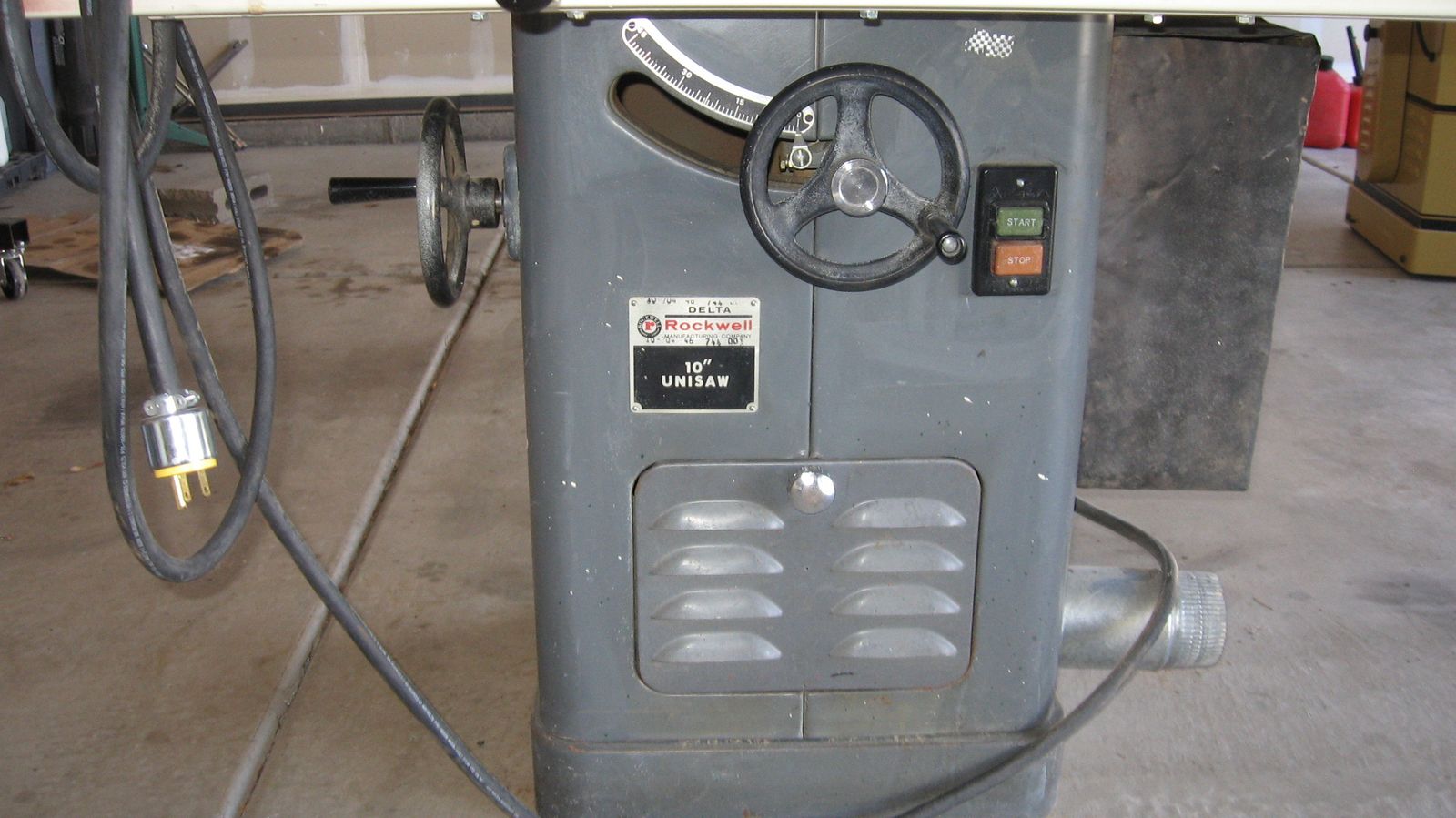 This is a 3HP 10" Delta/Rockwell Unisaw tablesaw. This is a must for every home shop. These unisaws are known for their durablilty. Cast iron and built to last. Worth every penny. I just have run out of space and prefer to park the cars in the garage instead. My loss your gain. Cash only in person.