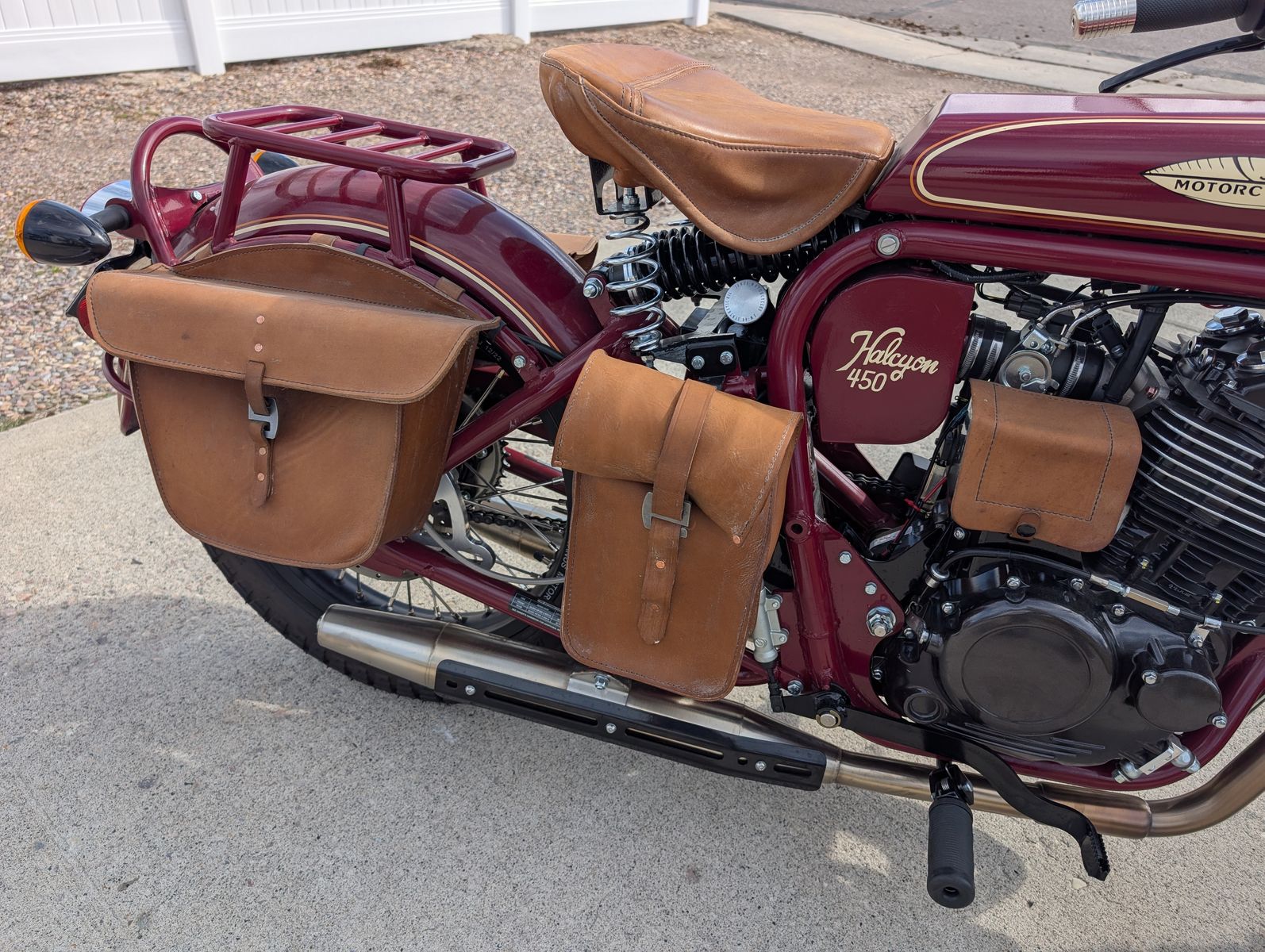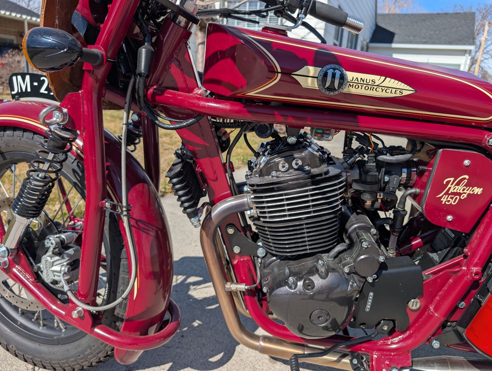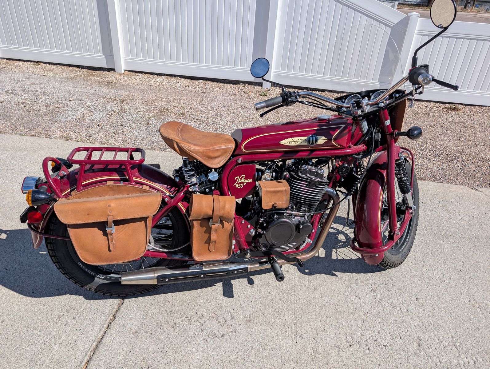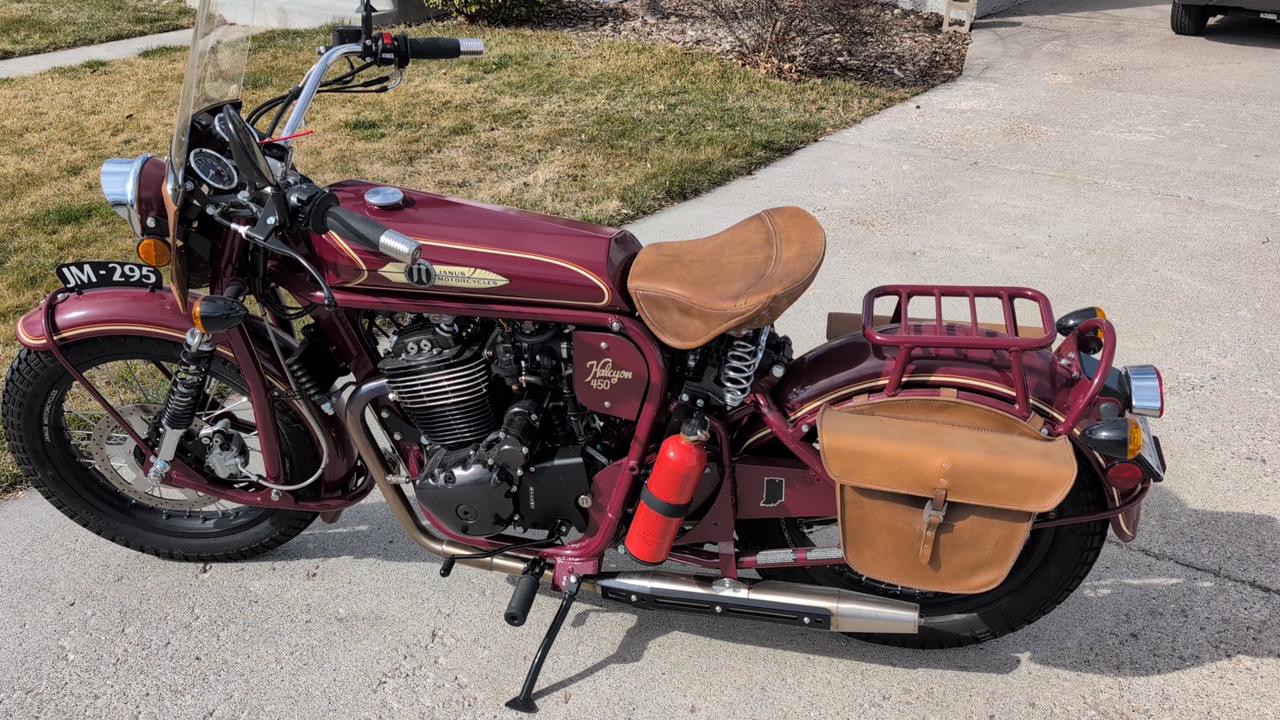 VenmoSelling my 2024 Janus Halcyon 450 (H450) with 751 miles. These are made in Goshen, Indiana. They are retro 1930 to 1940s design with modern made components and suspension. The leading link front end makes for a very stable and "no dive" front end. Hidden under the seat are dual rear shocks plus the seat is spring loaded for extra comfort.
