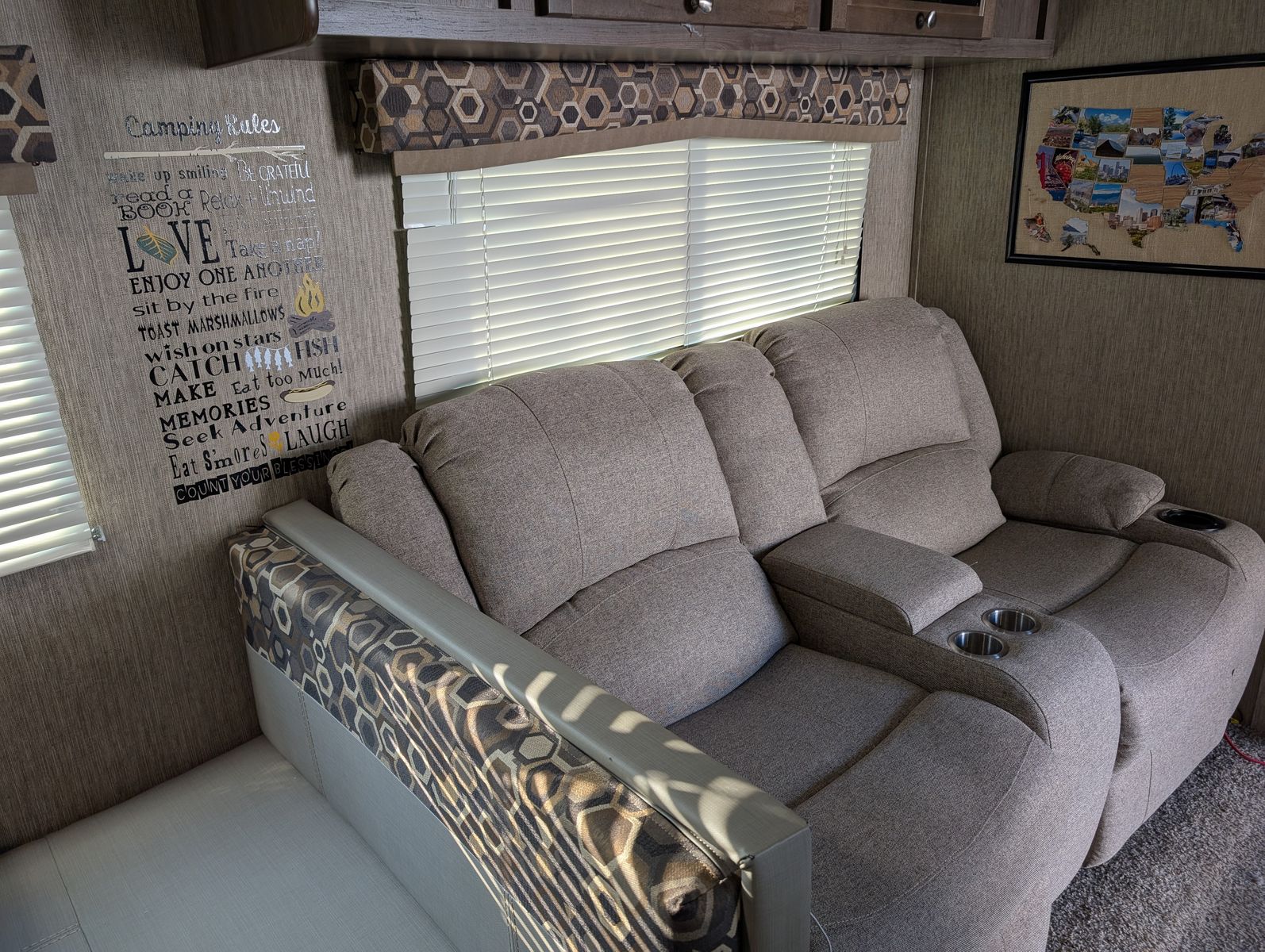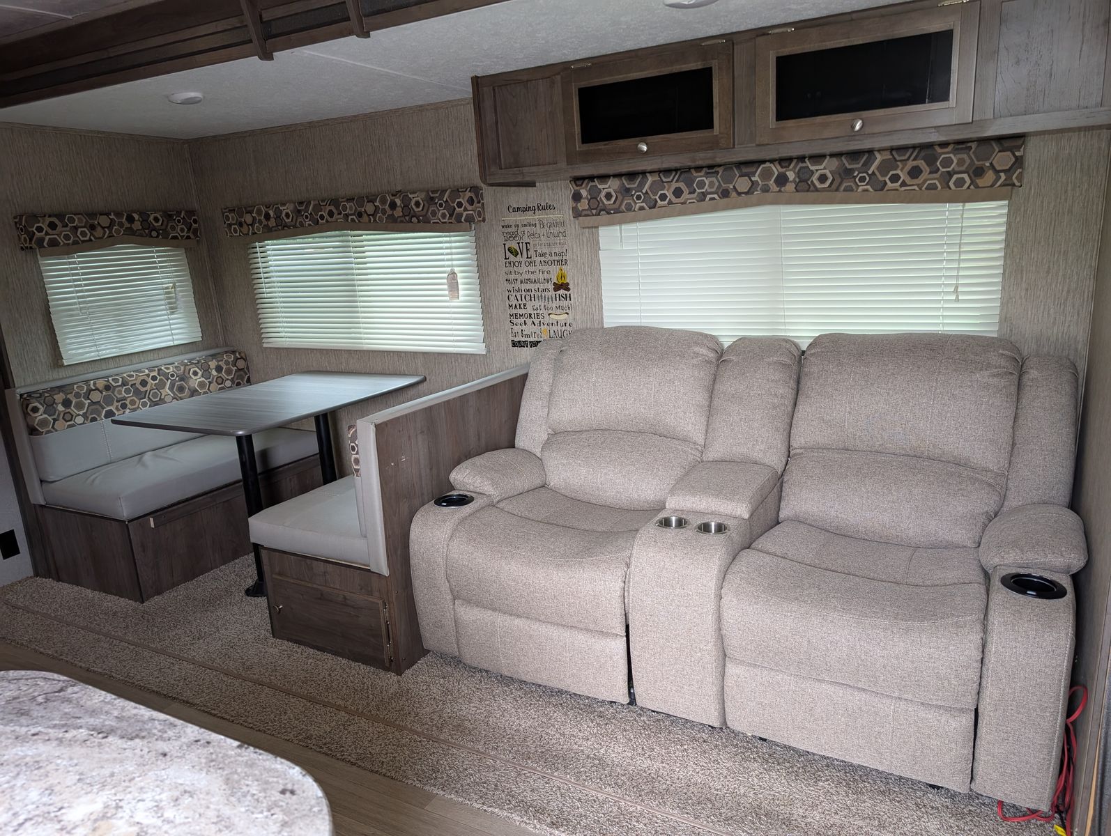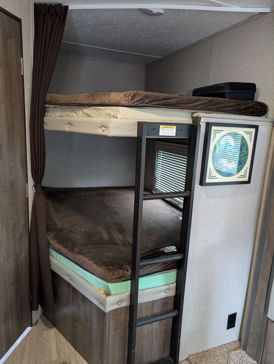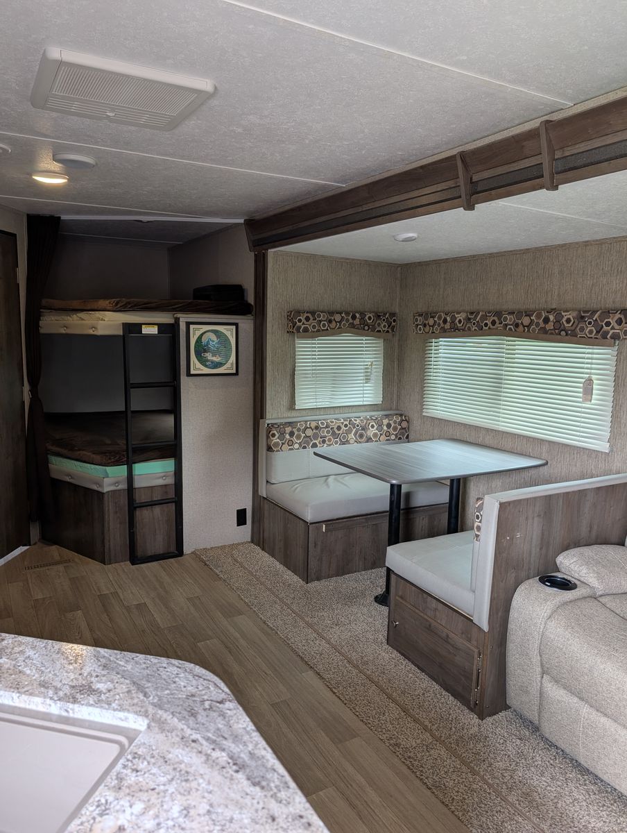 2018 Coleman Lantern 27' trailer. Electric trailer hitch, two propane tanks, electric awning. New Queen mattress, bunk beds and table makes into single bed. Recliner chairs with storage box and charge ports. New TV, AM/FM radio, CD/DVD player. AC, heater and water heater. Bathroom has tub with shower and door to outside. Trailer is wired for solar and has cable hook up. Text Mike at 801-953-9175