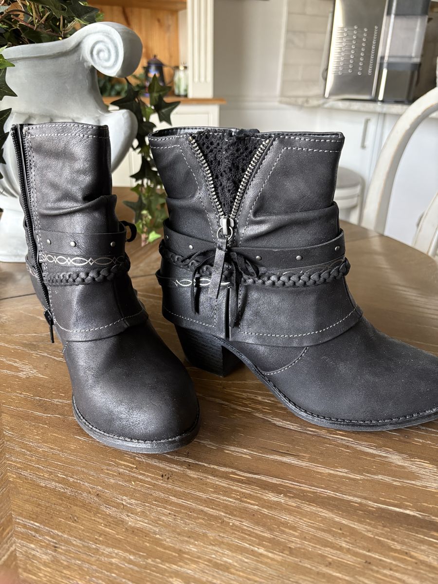 2 pairs of Jelly Pop ankle boots size 7 1/2. Taupe and dark brown. The dark brown ones were worn for a few hours at most. They are just a little too tight. Asking $25 apiece.