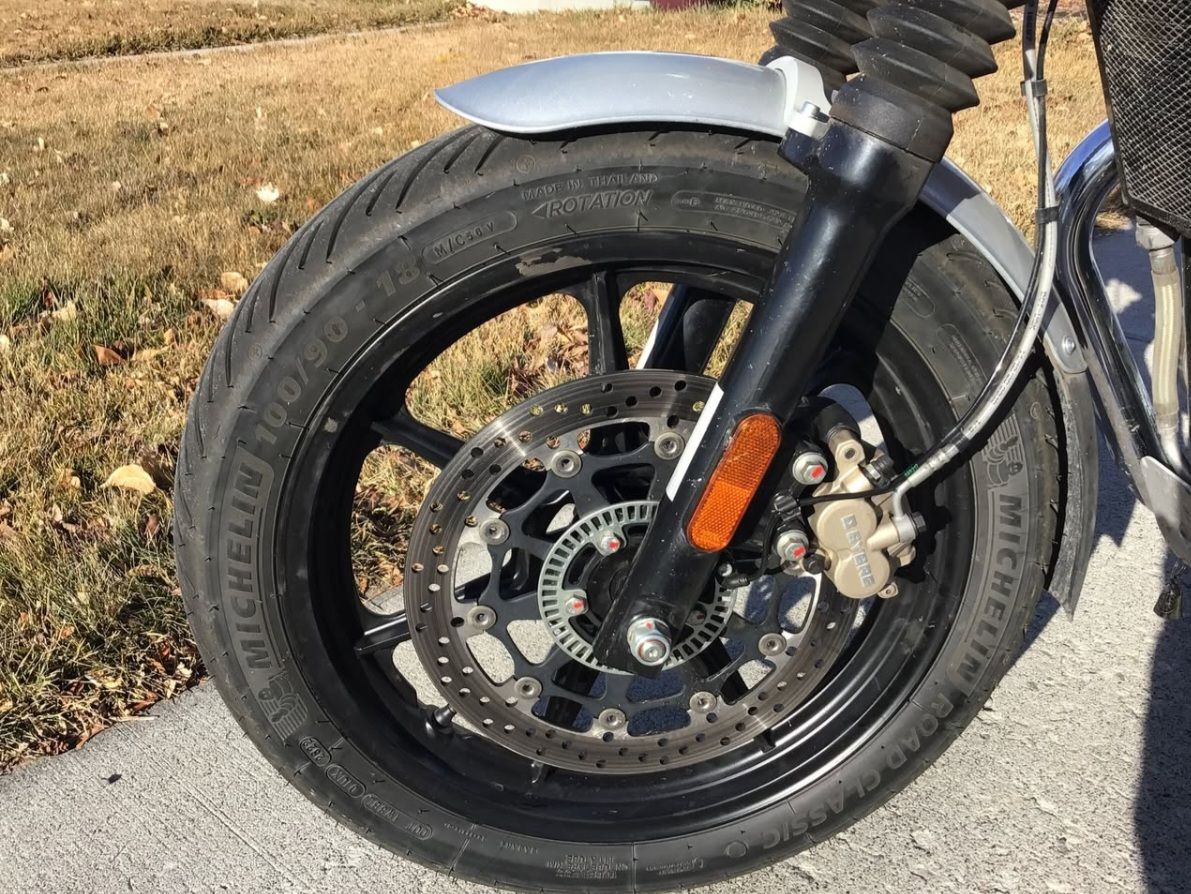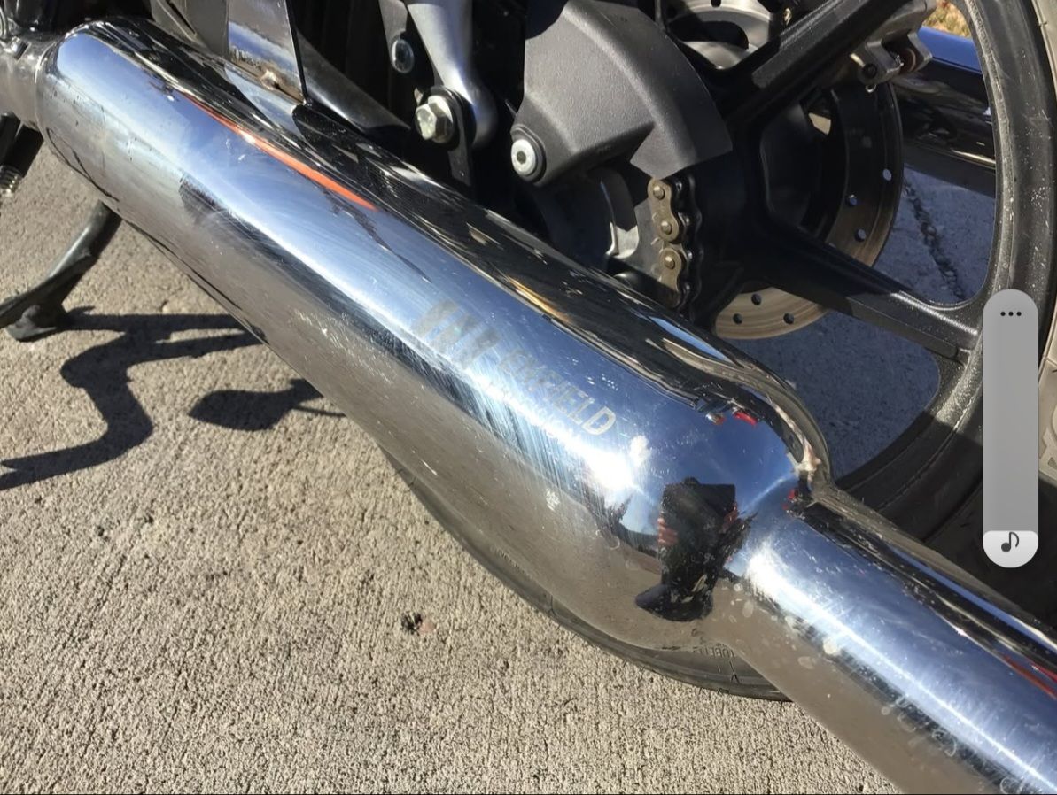 Tons of extras - quick release Madstad Full windshield and dark short flyscreen, Enfield Precision exhaust (for great sound), Corbin seat with removable backrest, heated grips, bar end mirrors, Longride quick release and lockable leather saddle bags and panier racks, usb plug, upgraded mag Tubeless wheels and tires. The new tires have around 300 miles on them. I am still riding this so the mileage may increase some.