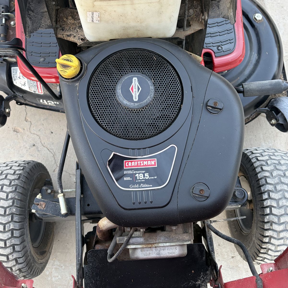 42in 19.5 hp. runs good has new battery and fuel filter. everything works been sitting for a while starts right up may need some fine tuning