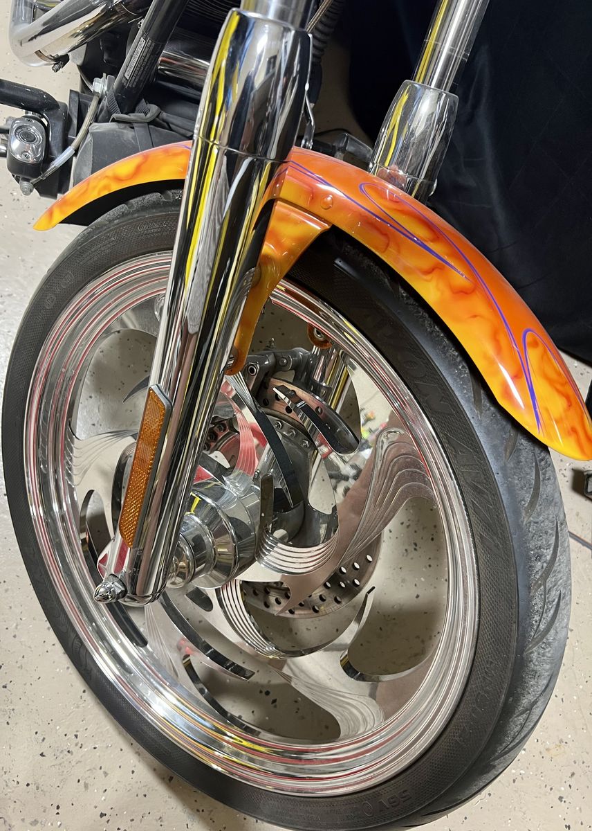 Frame: Rigid-mounted, softail-style (hidden rear suspension)