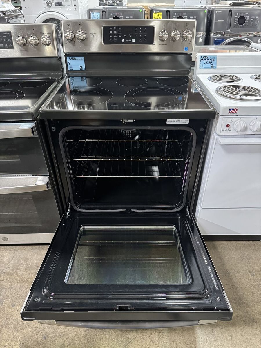 Ge 30 Inch Freestanding Electric Range with 6.2 Cu. Ft. Oven Capacity, 5 Radiant Elements, True Convection, Air Fry, Wi-Fi, Storage Drawer, Power Boil, Steam Clean, and Sabbath Mode
