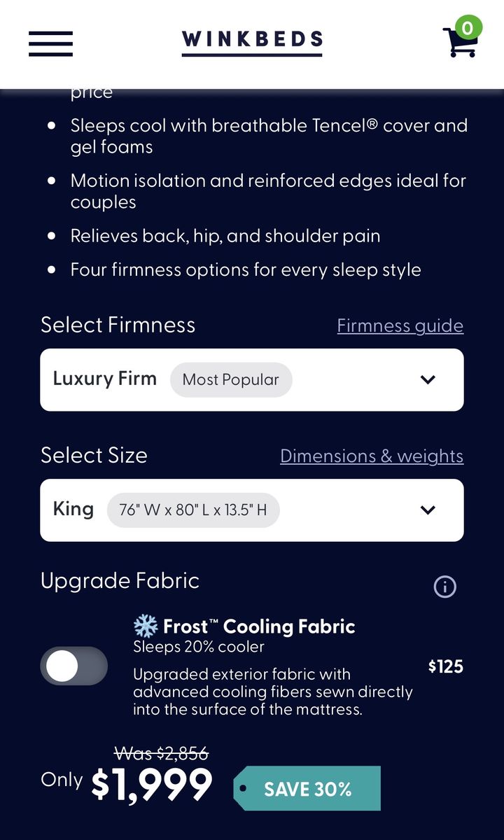 This is a Winkbeds Luxury Firm king mattress. It retails for $2800, is currently on sale for $1999. We are offering it for $700 or best offer. .