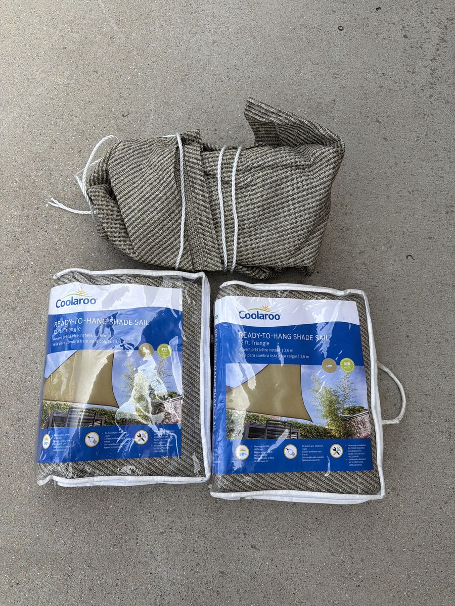 3 Ready to hang shade sail 12 ft triangle 1 used 2 still in packaging