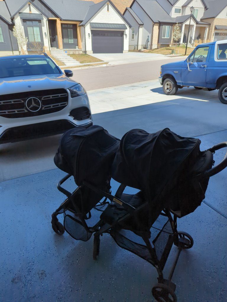 Zoe double stroller in great condition. Barely used. Front wheels on the front attachment stick a little. Good for running or walks. Non-smoking home. No sun fading. Comes with bottom baskets, sun shades, peep holes, breaks, and a travel bag. Front part is removable. can be used as a single stroller. CALL/TEXT to come see it today!