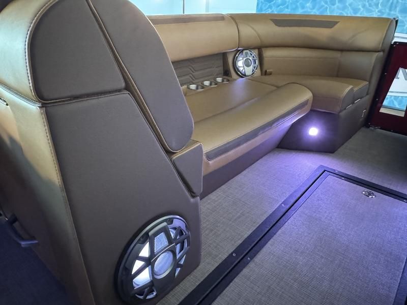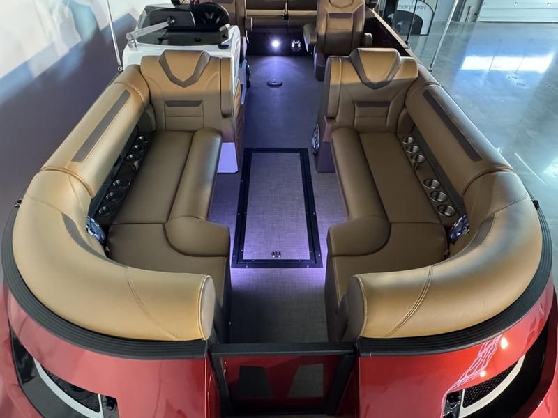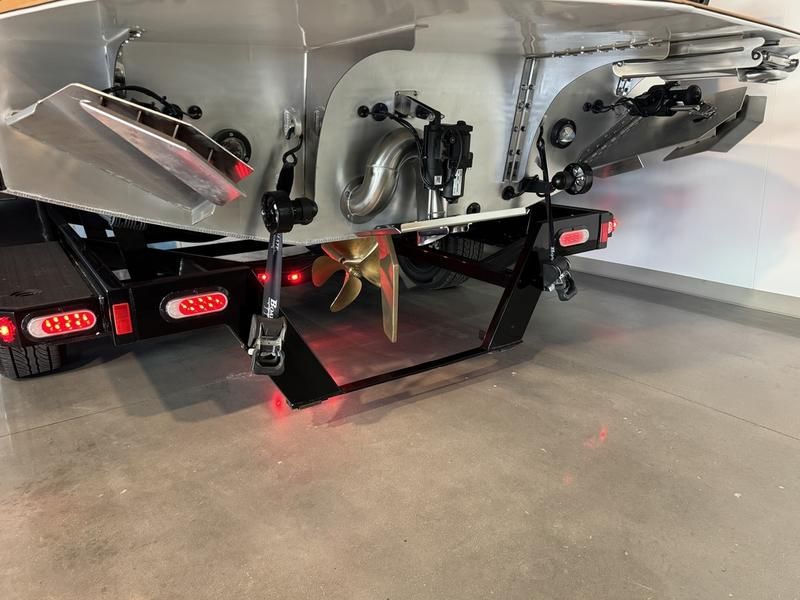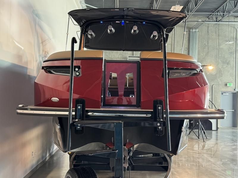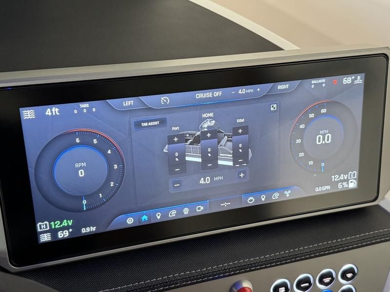 Fully optioned limited edition EVO Surf boss with all the things you want on your new Surf Boat. The 2026 EVO is all new from the rubrail up, with Improved Helm, New Upholstry, New Fencing, Larger 15 inch Screen, Liquid Propulsion Thruster and lighting, Hydraulic Steering all standard. Plenty of power with the ZZ6 PCM 6.2L engine, Premium Audio, and a sun lounger that makes this surf boat like nothing else on thee water. With 4,200lbs of ballast and a fully adjustable triple tab surf system you will be sure to dial in the wave just how you like. Our unique boat design offers the best attributes of a tow boat combined with the best attributes of a high end pontoon boat. Get the room, ride, storage, and ease of entry of a pontoon boat along with the handling and wakes of a tow boat. Truly two boats in one. This Surf Boss has the new SL floor plan. The Stern Lounge layout is designed with an open center walkway, ensuring easy access across the deck. At the rear, a generously sized lounge seat offers a relaxing space to enjoy the surroundings, perfect for gathering with friends or soaking up the sun.
