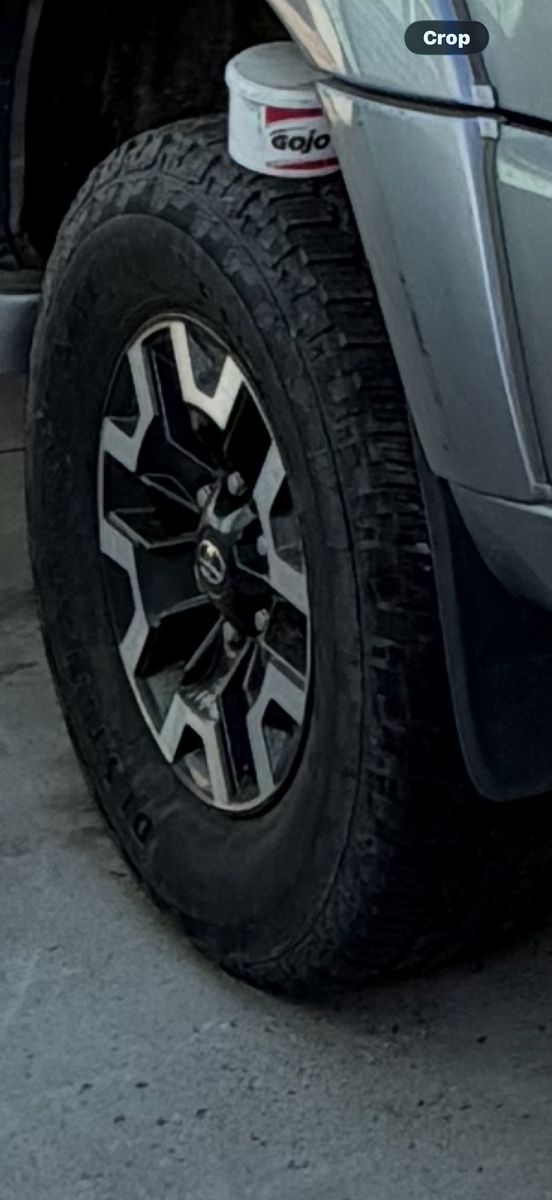 4 wheels & TPMS sensors. 3 good matching tires, one has a hole in the sidewall and needs to be replaced. Tire tread depth 23/32nds on the 3 good tires that hold air.