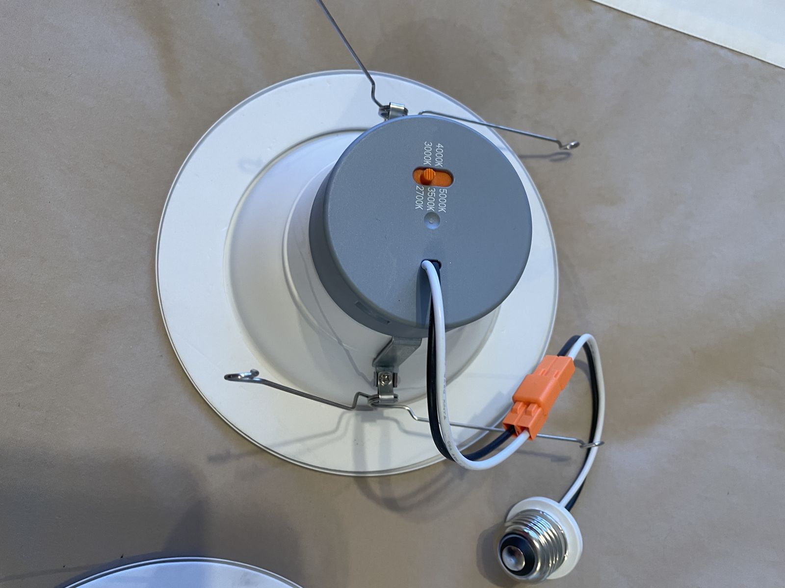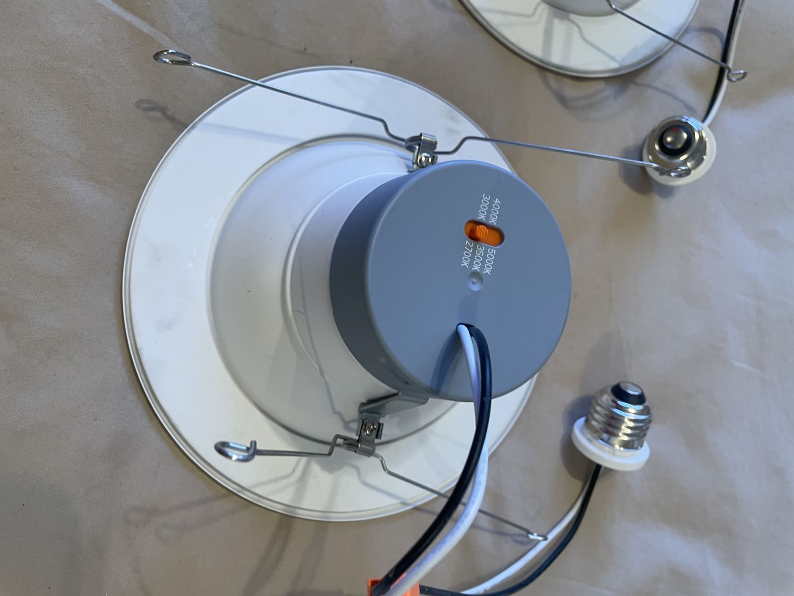 VenmoLED recessed light retrofit kits, white, set of 4, 6 inch, with a color temperature selector switch (2700K/3000K/3500K/4000K/5000K). That’s a premium feature. They were installed and previously used.